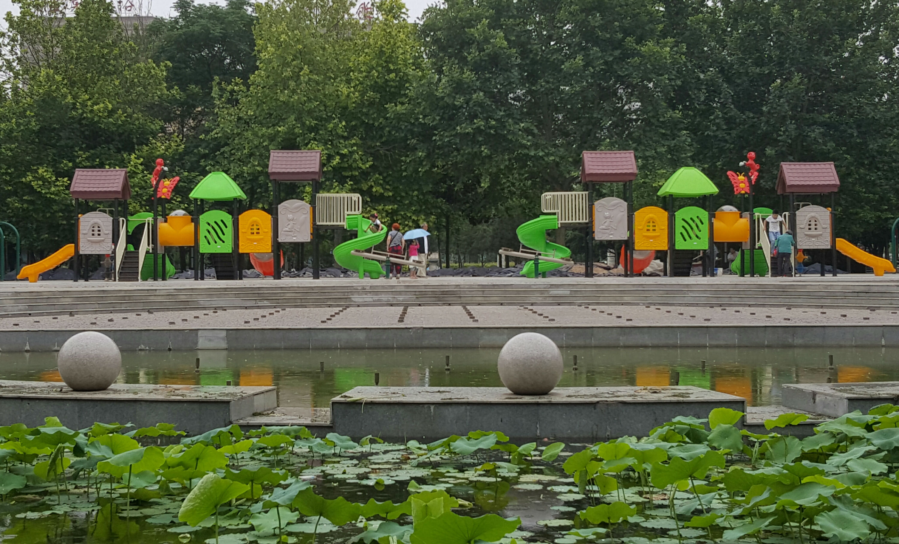6月4日,记者在市区春秋广场看到,两组色彩鲜艳的儿童滑梯在这里“落户”,吸引了很多孩子兴高采烈地前来玩耍。