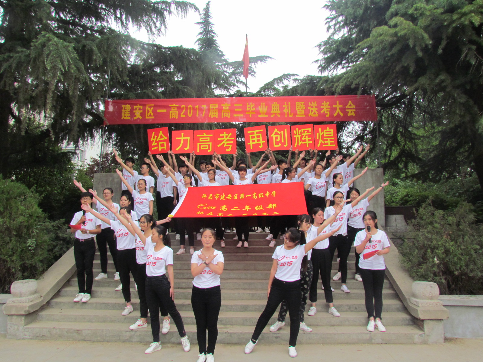 为让高三学生能够真切感受到母校的深深祝福,同时为他们即将迈上高考考场壮行加油,6月4日,建安区第一高级中学隆重举行了2017届毕业典礼暨送考大会。该校高三年级全体师生和高一年级、高二年级、初三年纪学生代表等1600多名师生参加了高考送考大会,为高三学子加油鼓劲。