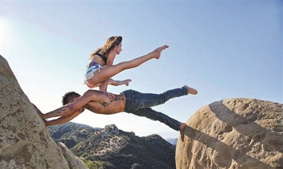 瑜伽已经成为世界上最时髦的健身项目,因此不断涌现出有创意的“分支”,其中走出屋子练习是很多爱好者的选择。一对美国情侣就选择在加利福尼亚圣莫妮卡山脉的巨石上练瑜伽,非常惊险。