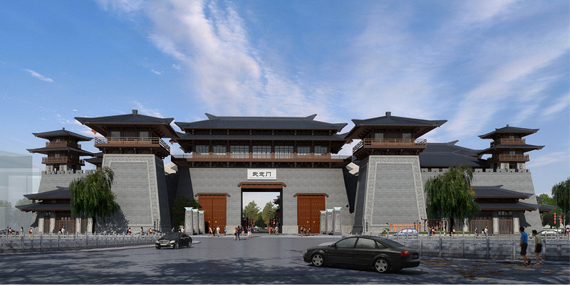 曹魏古城建设指挥部规划土建组工作人员乔培朱介绍,按照规划,南城门,以及西侧的古城游客接待中心、东侧的商业入口均在建设路,地下或地上停车场入口均在学巷街。根据规划,建成后的曹魏古城南大门,中间大门净宽10.5米、高12.2米;另外,大门两侧各有一个宽5.9米、高8.65米的小门。