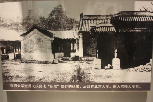 1900年,八国联军侵占北京,京师大学堂校舍被占,图书及设备被毁,学校一度停办。直至1902年,该校得以恢复并增设预备科(新政科、艺科)及速成科(仕学馆、师范馆);1903年增设进士馆、译学馆及医学实业馆,毕业生分别授给贡生、举人、进士头衔;1910年改设为经、法、文、格致、农、工、商7科。辛亥革命后,京师大学堂改称北京大学,是我国近代最早的一所大学。