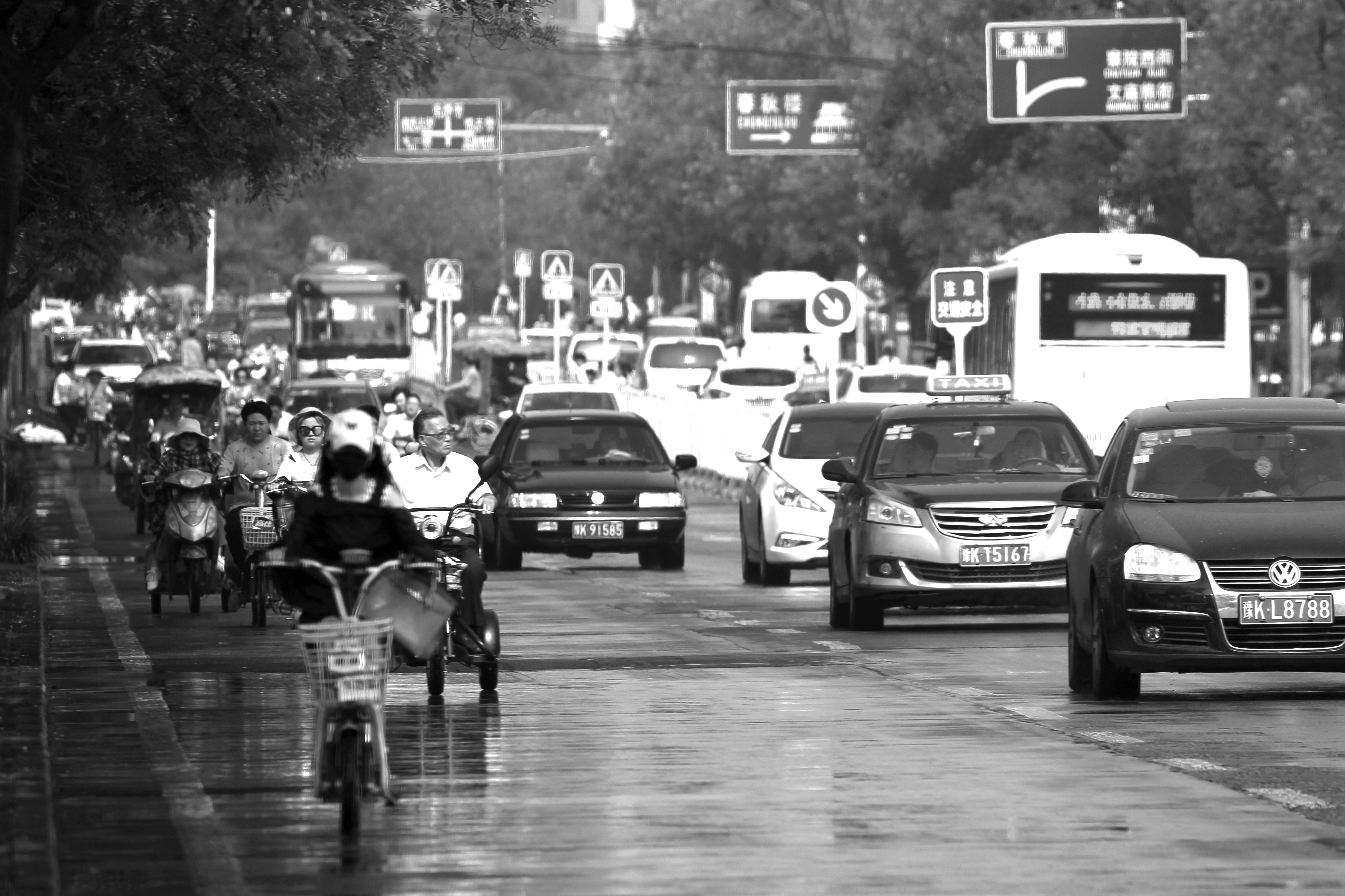 7月10日,市民在除尘降温后的市区建设路上出行。近日,伴随着高温天气的出现,记者在市区建设路、劳动路、文峰路等路段看到,几辆洒水车正在除尘降温。洒水车就像一台流动的空调,降低了路面温度,为行人带来了清凉。