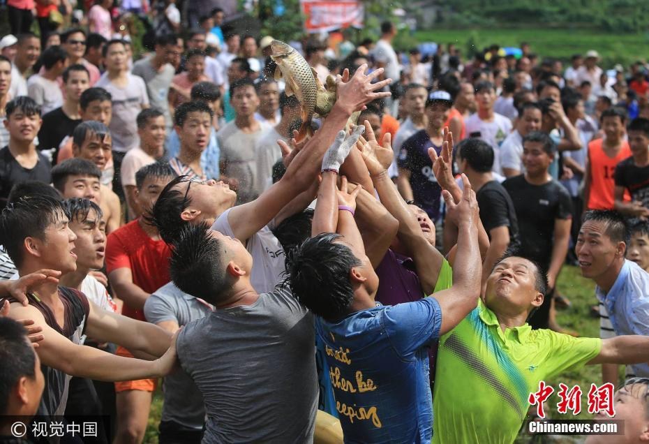 7月9日是农历六月十六,广西融水苗族自治县红水乡良双苗寨举行闹鱼、放鱼、抢鱼、吹笙踩堂等活动,欢度传统节日“闹鱼节”。据了解,“闹鱼节”是流传在广西融水苗族自治县红水乡一带的古老民俗,至今已有459年的历史。人们在“闹鱼”中祈求风调雨顺、五谷丰登。