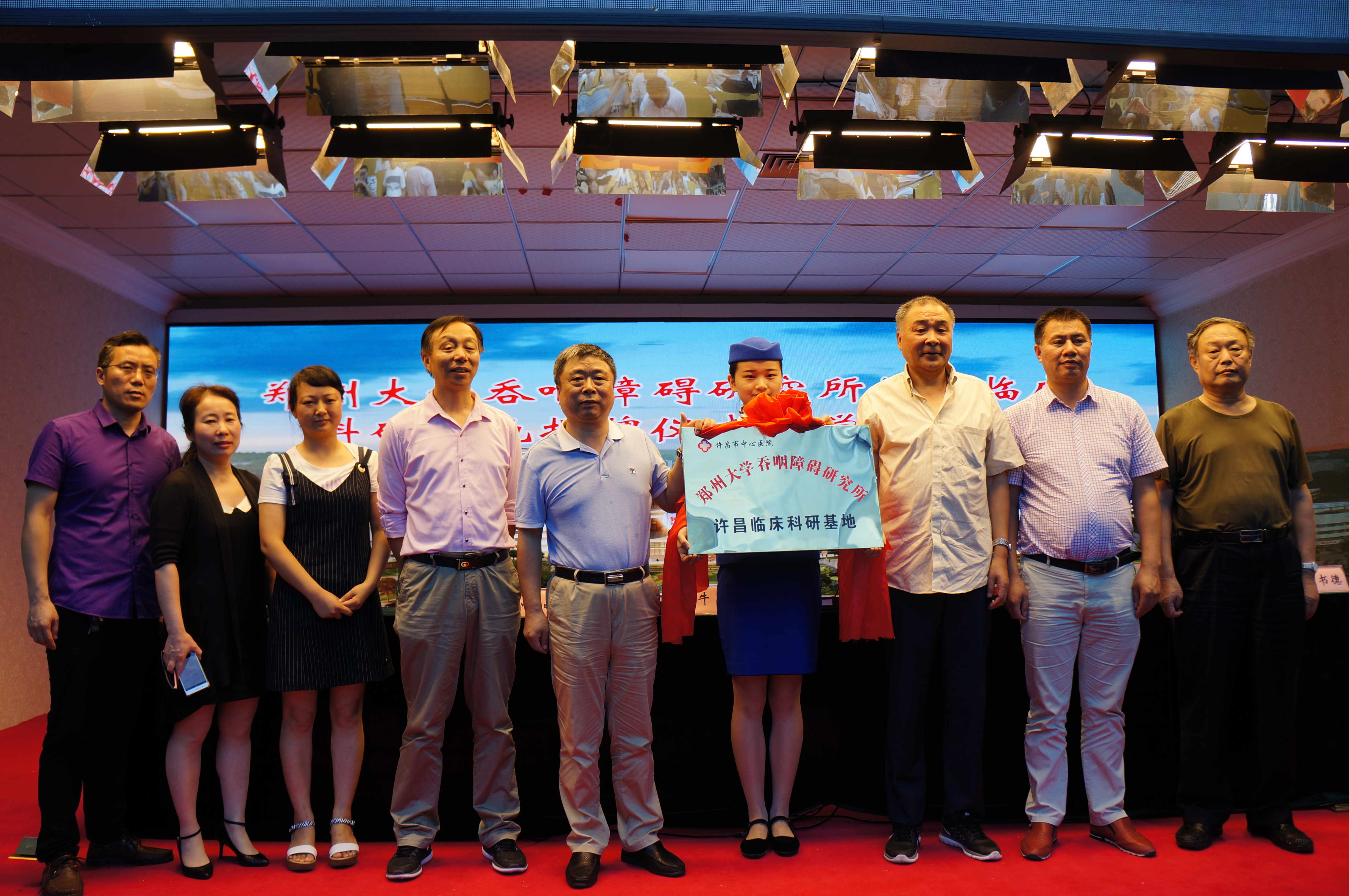 7月7日,郑州大学吞咽障碍研究所许昌临床科研基地揭牌仪式暨学术会议在许昌市中心医院举行。郑州大学吞咽障碍研究所大胆改革,将鼻胃管改为间歇经口至胃管的管饲法,获得巨大成功。该基地的成立将有力推动我市吞咽障碍科研和康复技术水平的提升,为广大吞咽功能障碍患者带来福音。图为揭牌仪式现场。 记者 马晓非 摄
