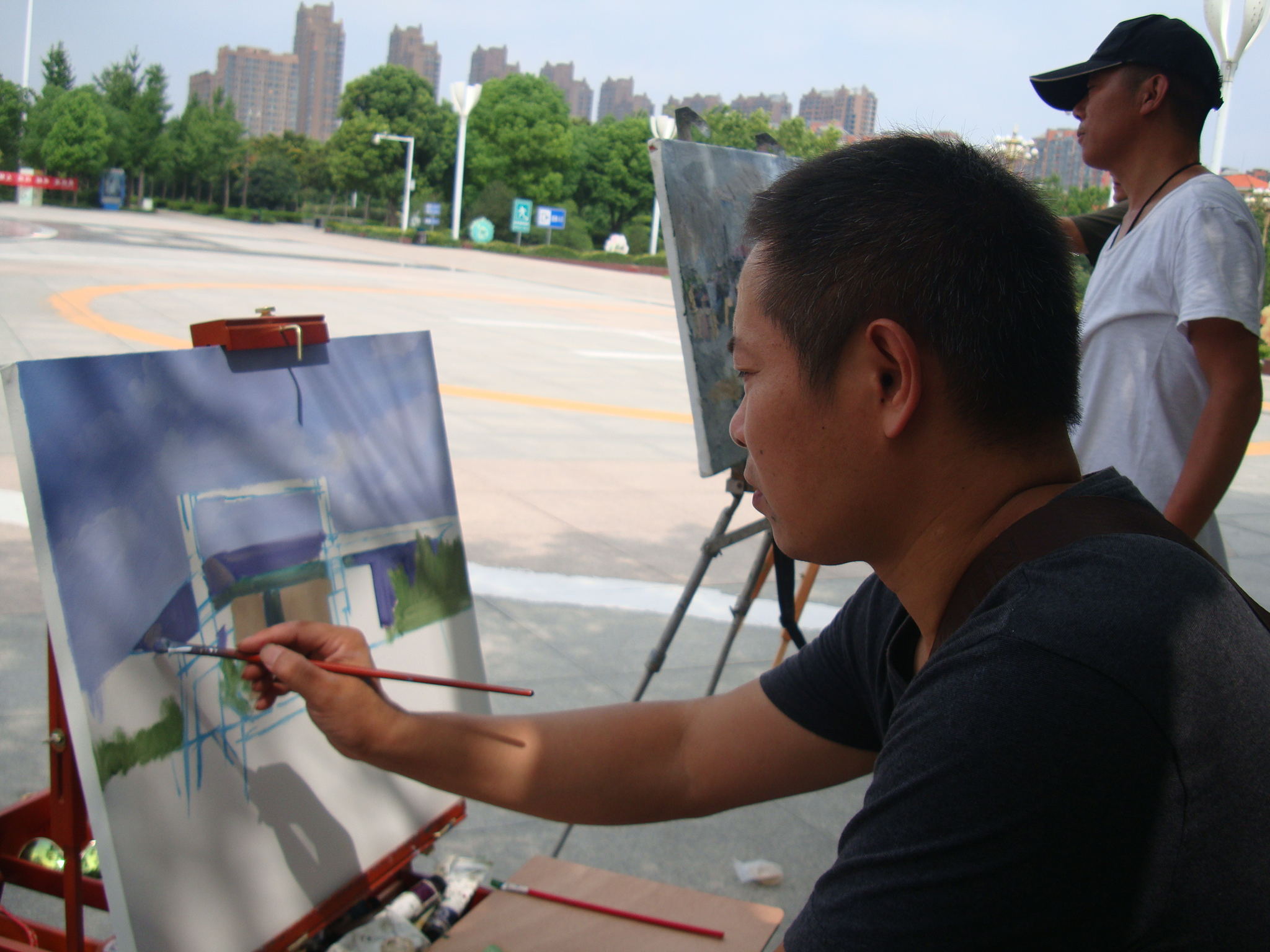 7月20日上午,由市文联发起的“画说许昌”——献礼党的十九大油画作品采风创作展览在许都公园启动。我市知名书画家和书画爱好者会聚在智慧门前,支起画架,饱蘸油彩,从不同的视角发现许昌之美。市美协副主席龚立新告诉记者,近年来,我市大力实施水系连通工程和曹魏古城建设,形成了优美的城市风光和人文环境。他们寄情于画笔,将大美许昌画出来。