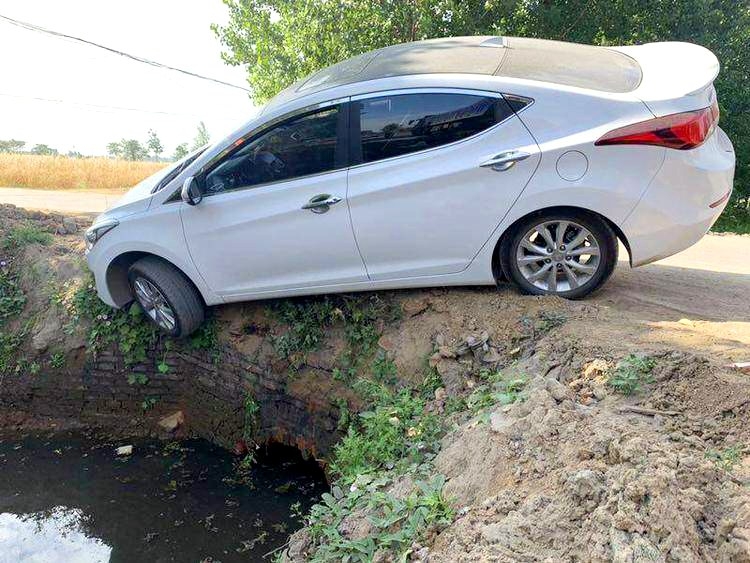 5月29日,武伟伟当天带领帮扶队员和社区干部在李庄社区东部进行三夏防火禁烧巡逻时,突然发现一辆白色轿车一半悬空,随时可能掉进水沟。武伟伟立即组织大伙儿上前帮忙。