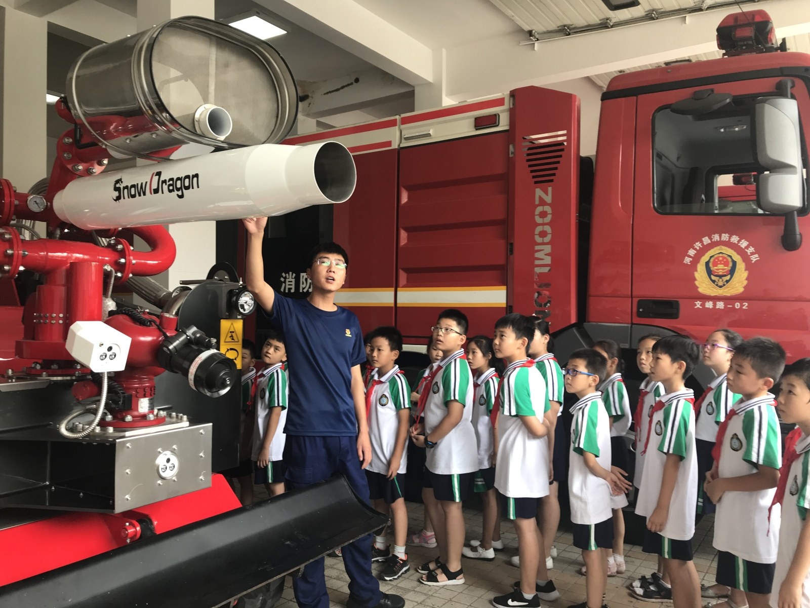 本报讯 (记者 黄舒平 文/图) 8月4日上午,市毓秀路小学二(2)班师生40余人,走进魏都区消防大队文峰二中队参观、体验。