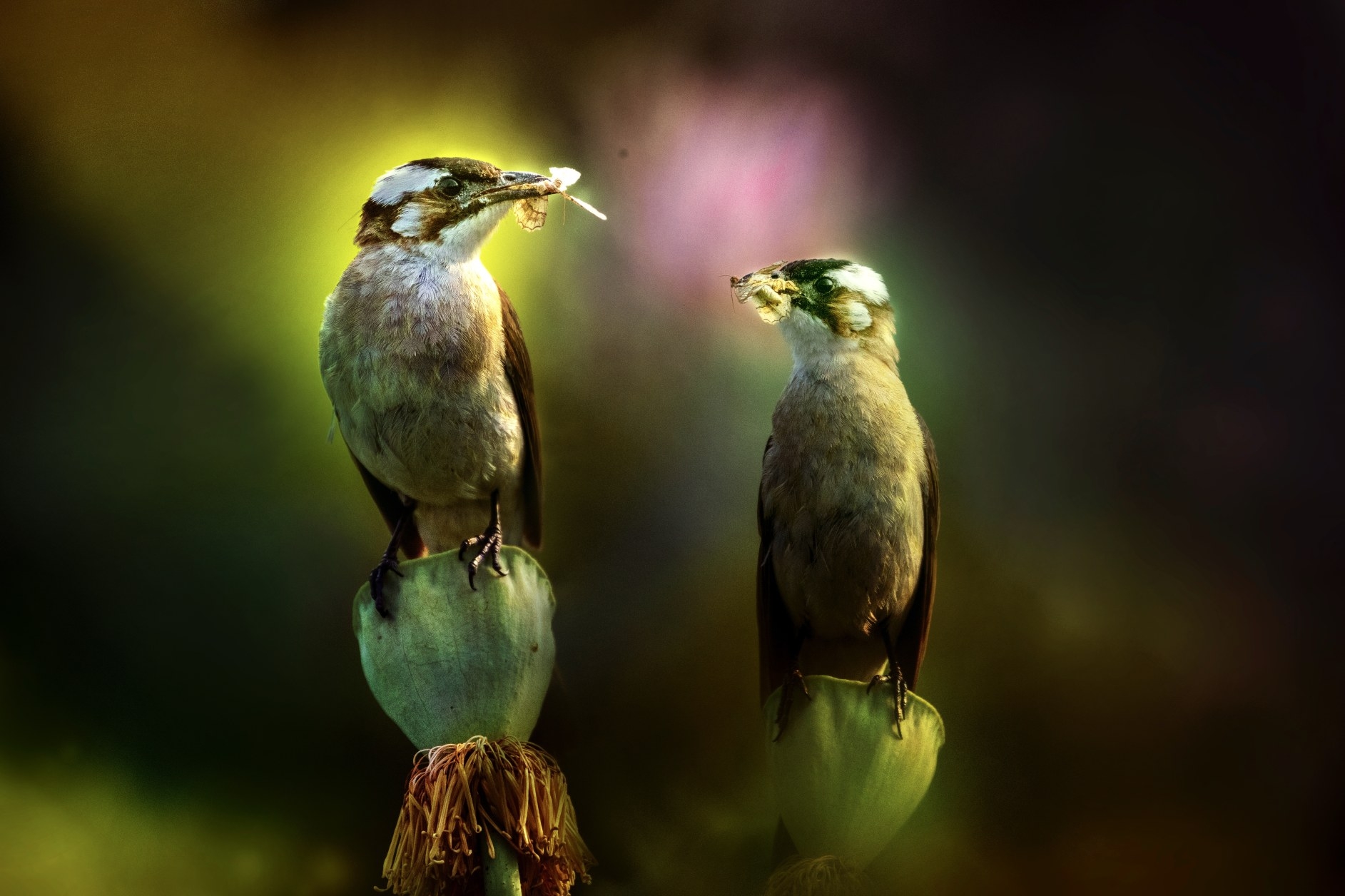 两只鸟儿捕获昆虫后相望,是在展示彼此的“战利品”,还是相约共享一顿美食? 晨报摄友 礼悟伊 摄