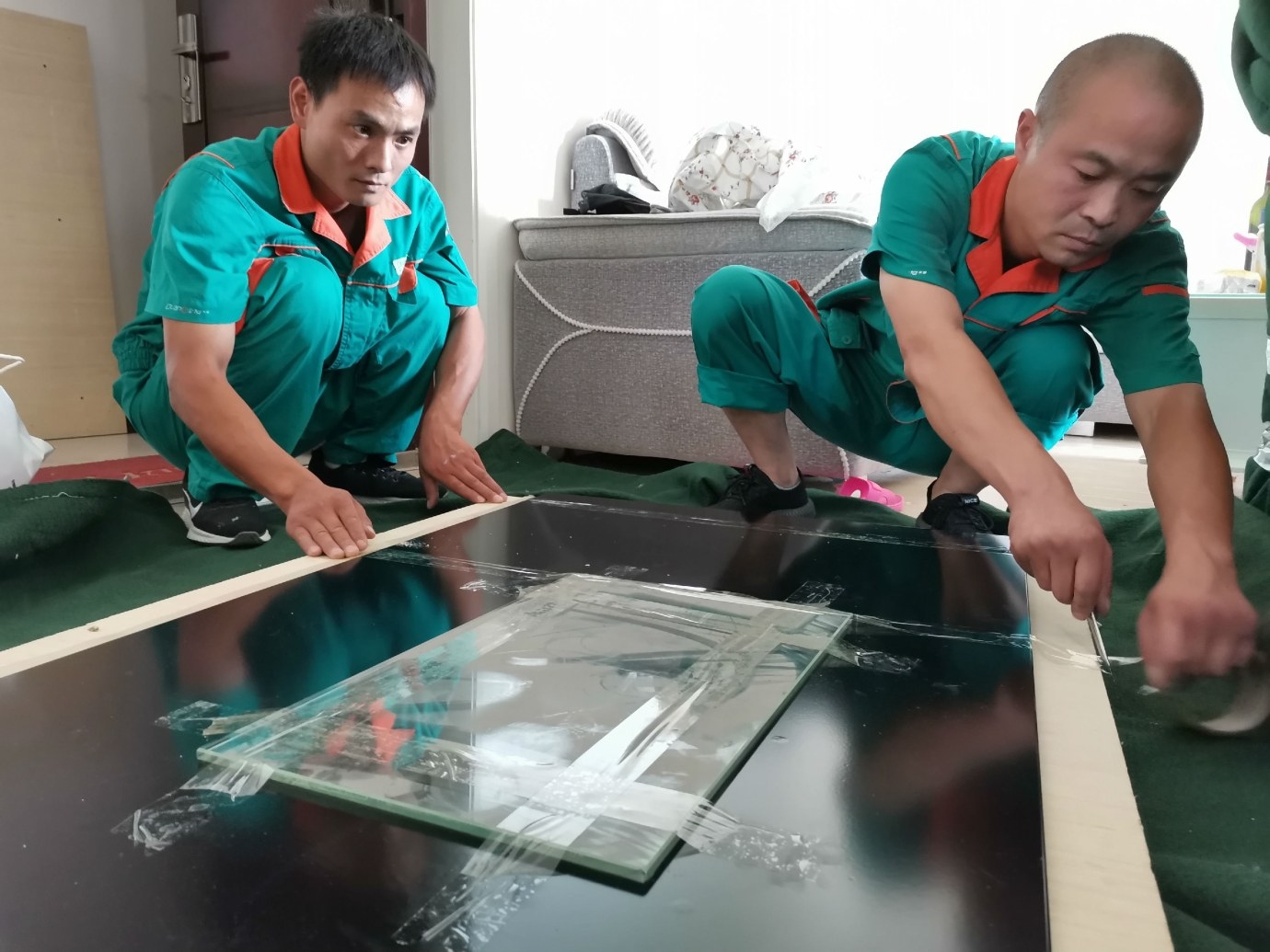 “餐桌玻璃台面一定要用防震材料固定,不然托运的时候会破损。我们卖场刚好有一批剩下的包装材料,我全带过来了。平时包装家具的工作是由搬家公司或者物流公司完成的。”安装师傅刘石伟说,他们带了足够多的纸板,又用从尤先生家双人床上拆下来的两张床板进行了固定,最大限度保证玻璃台面在运输过程中的安全。