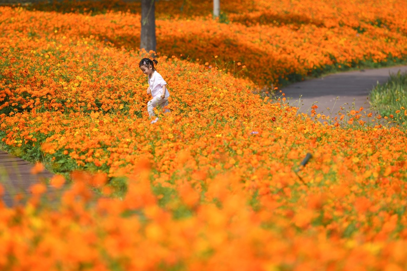 10月9日,小朋友在四季花海城市公园游玩。秋日,位于安徽省合肥市的四季花海城市公园花香四溢,色彩缤纷,成为游客休闲游玩的好去处。 新华社发