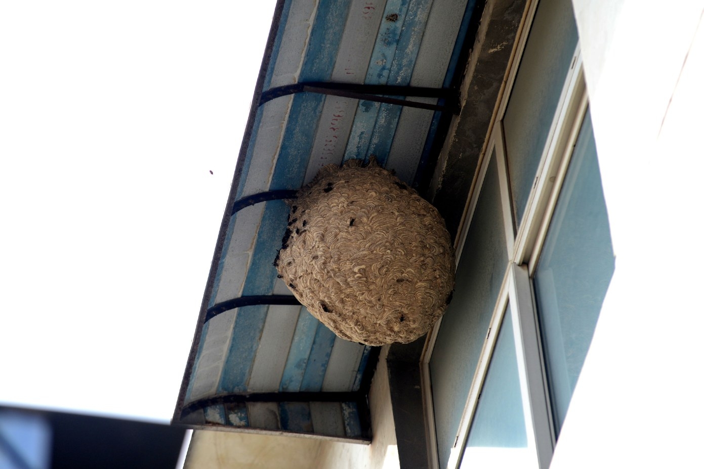 小心翼翼地拉开窗户,记者伸出头看到,两米多外的马蜂窝上趴着一些黄头黑背的马蜂。马蜂窝的外表呈虎皮花纹状,上面的孔洞不像我们平常见到的马蜂窝那样密密麻麻。“这么大的马蜂窝,我还是头一次见到。这一带居民很多,万一蜇到人可不得了。”李怀奇说,他们前几天拨打了报警电话,消防员来现场进行了勘查、拍照,也请教了相关人员,因为担心清除时“漏网之蜂”袭击人或再次筑巢,所以没有清除。“他们说入冬后马蜂进入冬眠状态,很容易一网打尽,而且不会伤及居民。”李怀奇说,“现在已经是秋天了,只要不招惹它们,它们一般不会蜇人。我们觉得消防员说得有道理,就先不管它了。”