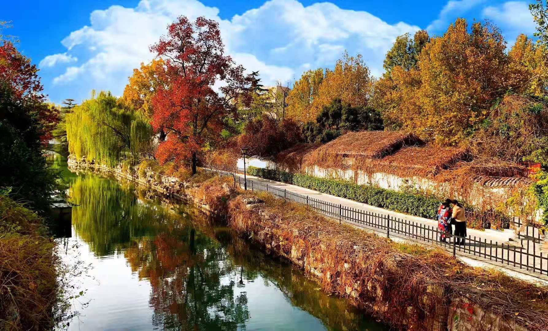图片于11月18日摄于西湖公园。随着天气转冷,冬天的气息越来越浓。西湖公园内的植被色彩斑斓,在蓝天、白云的映衬下显得愈发美丽。