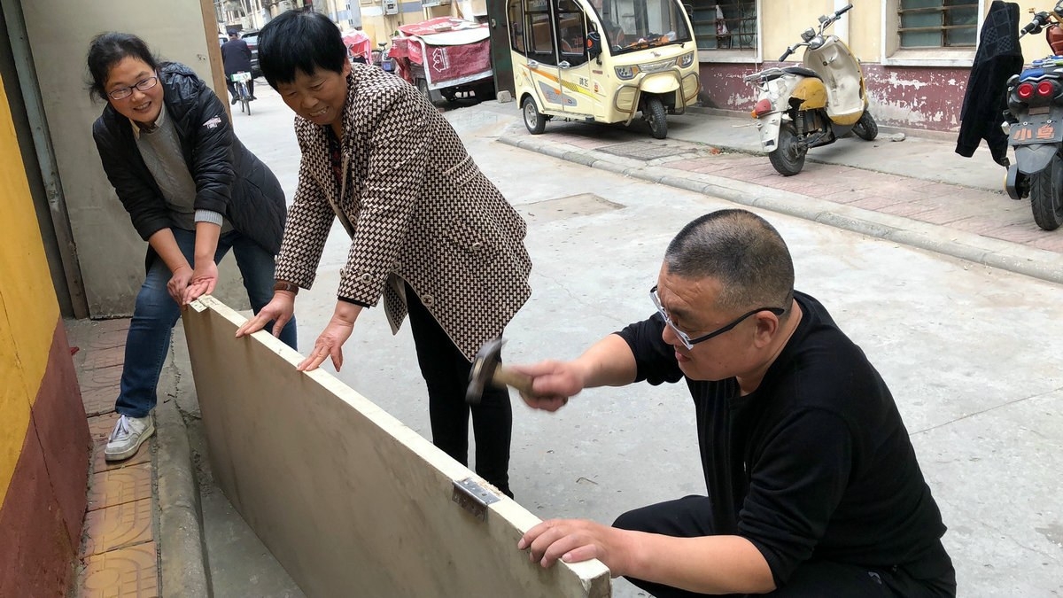 “你回家休息吧,这里交给我们了。”11月9日上午,在许昌市第一食品厂家属院,魏都区文峰街道办事处游园社区副主任杨彩云和综治专干王东亮帮低保户樊德才修理储藏室的木门。