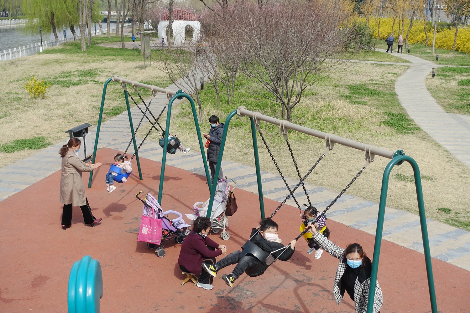 3月17日,市区清潩河游园游乐场,一些小朋友在荡秋千。近日,我市气温回升,一些市民在做好自身防护的情况下走出家门,享受春光。记者 黄增瑞 摄