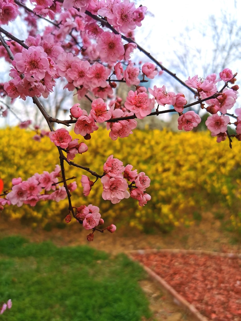 “白玉堂前一树梅,为谁零落为谁开。”梅花色彩艳丽,花瓣娇嫩,且先开花,后萌发新叶。市区种植的梅花品种丰富,有榆叶梅、美人梅等,眼下正值盛花期。