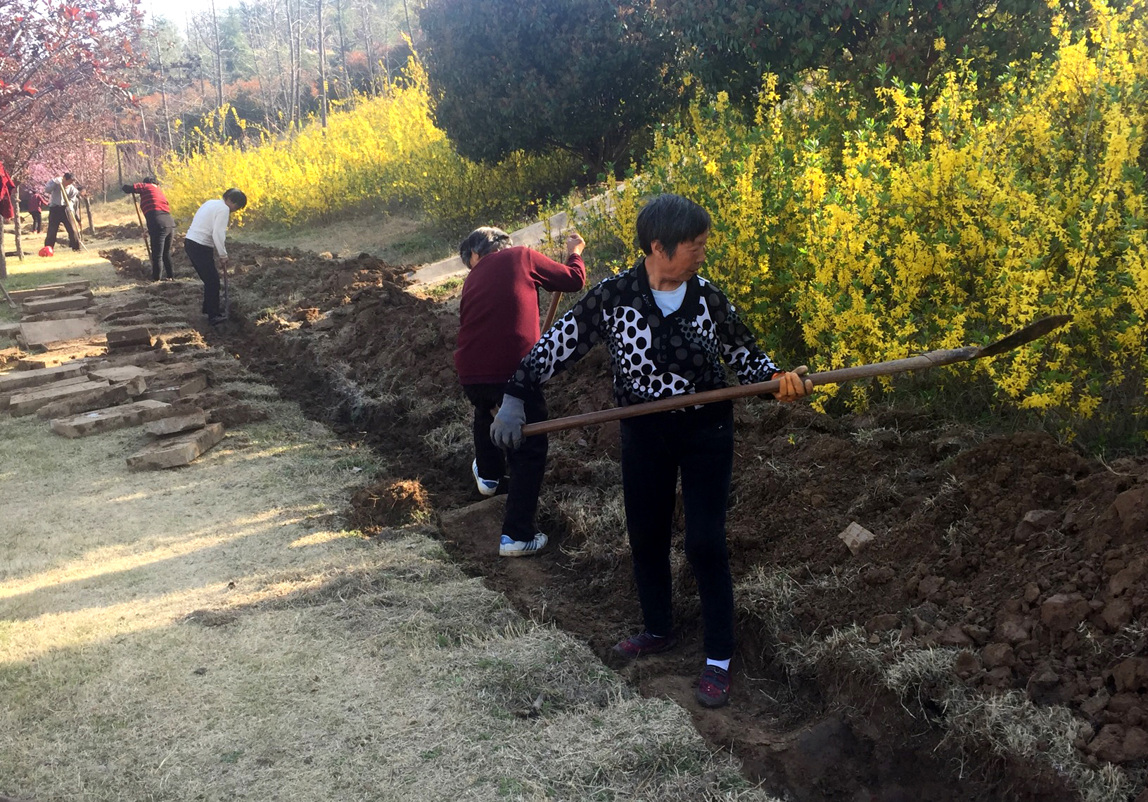 3月18日,工人在东城区鹿鸣湖畔小区进行线路施工。