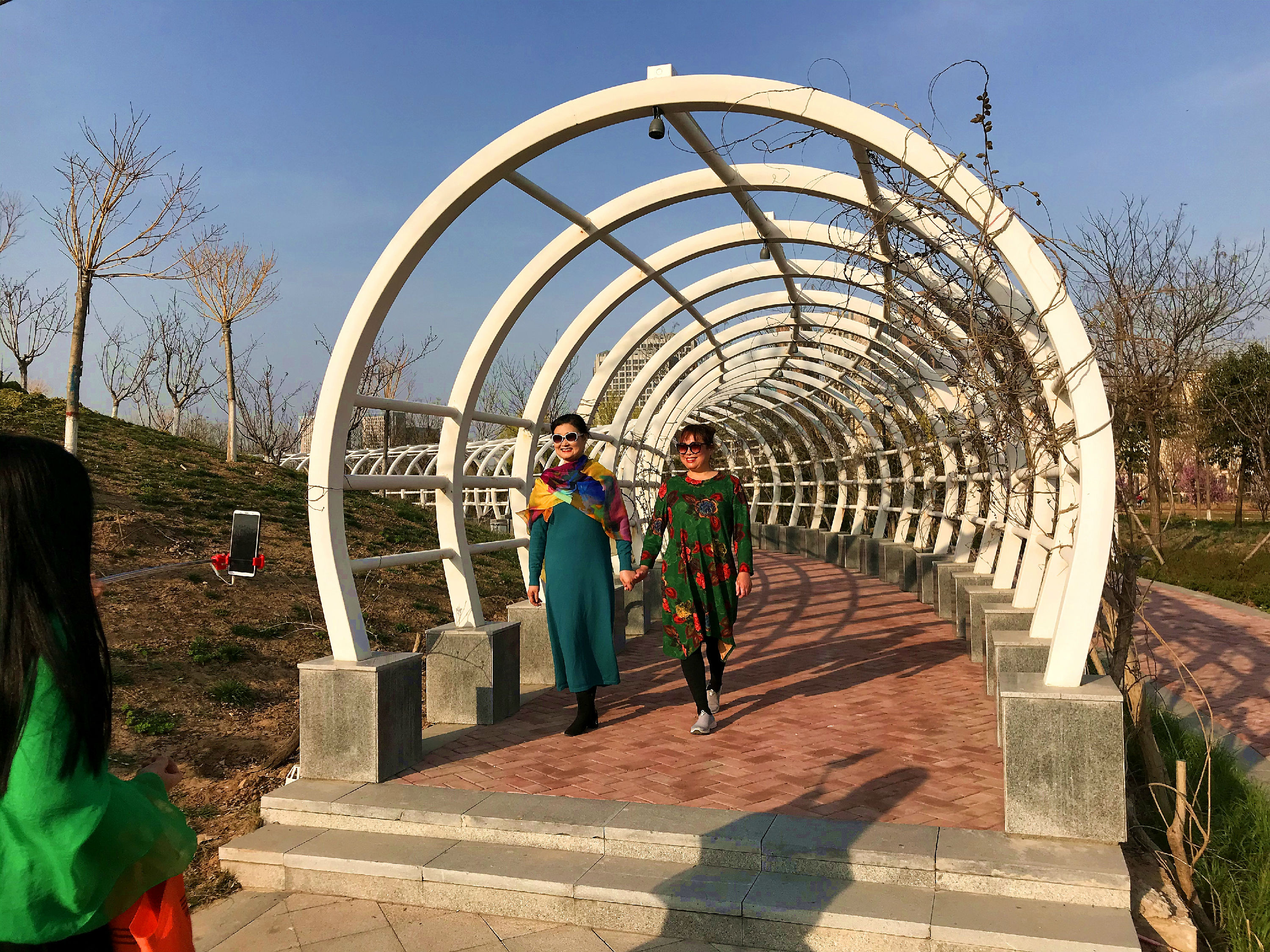 3月18日,市区中央公园万通街以北的一个连廊,市民正在拍照留念。为进一步提升品质,近两年,中央公园不断进行景观提升改造,如今成为我市一处名副其实的景观地标。
