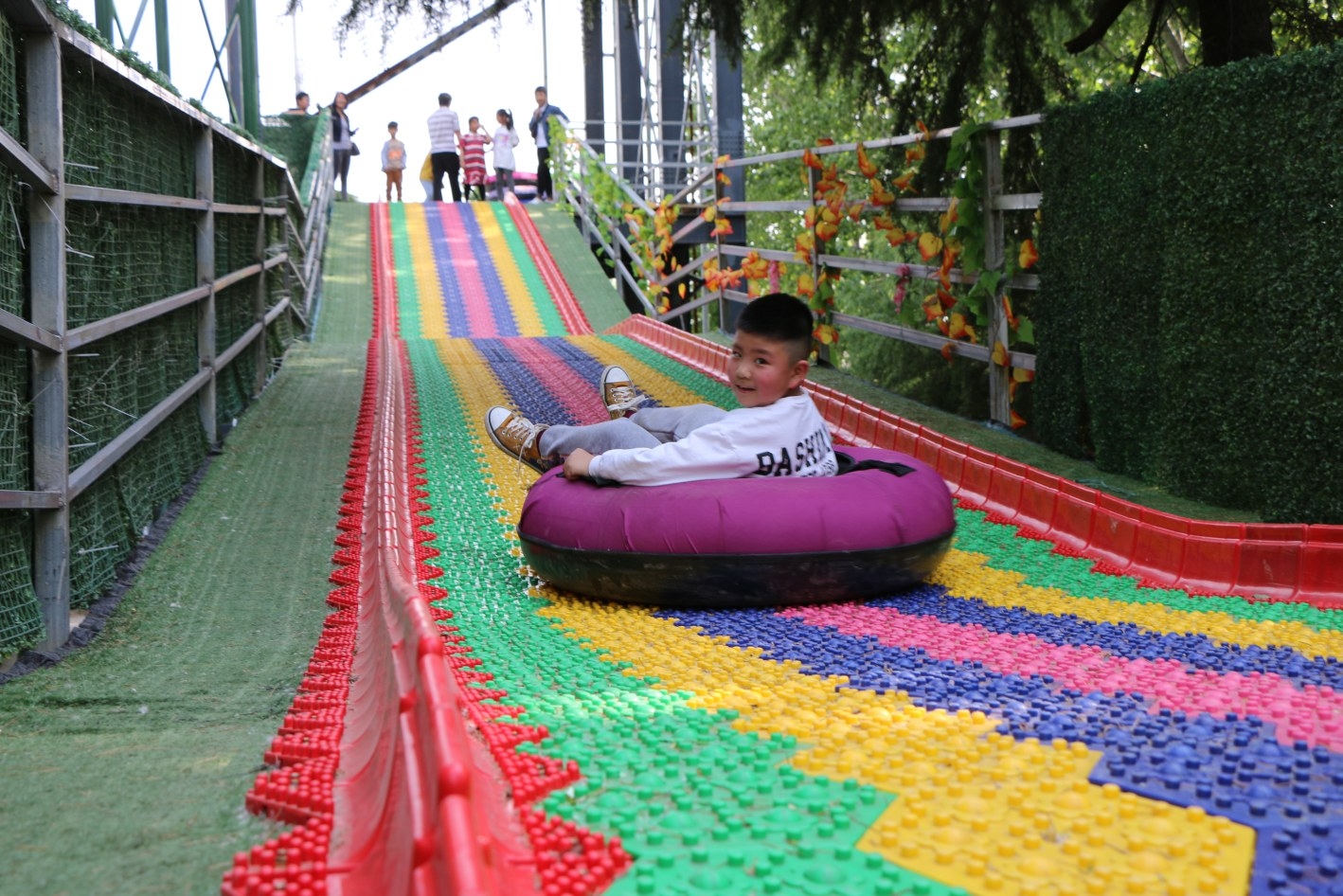 4月25日,游客在灞陵桥景区体验七彩滑道。五一小长假即将到来,我市各大景区提前进入“备战”状态,纷纷推出全新的活动。灞陵桥景区推出七彩滑道、高空玻璃漂流卡丁车等特色项目,将给游客带来全新的体验。 周亚飞 摄