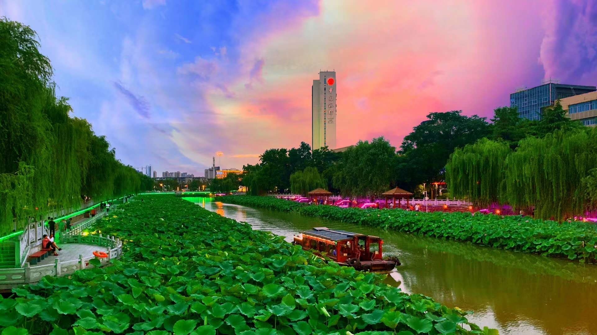 护城河畔,绮丽的晚霞铺满天空,如诗如画,绚丽多彩,令人陶醉。 晨报摄友 高文胜 摄
