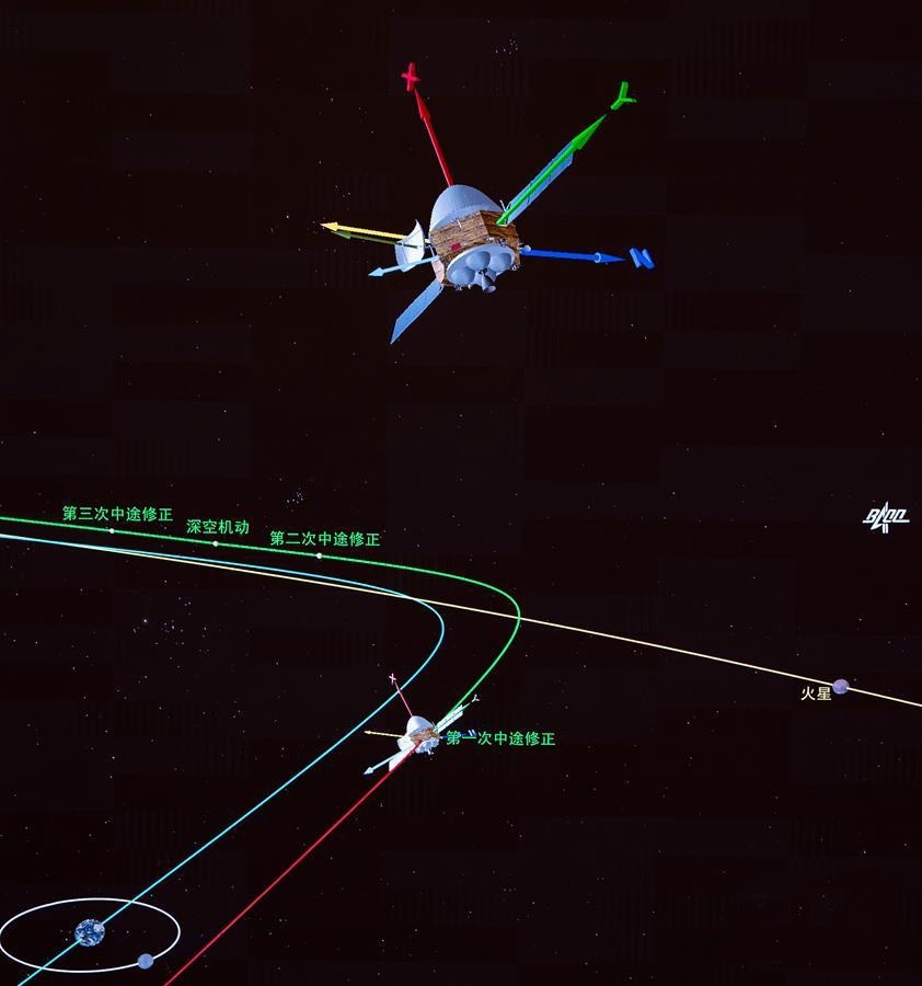 此前,本次长征五号运载火箭精准地将火星探测器送入了预定轨道,使得这次轨道控制的主要目标不再是入轨精度修正,而是要完成轨道控制3000N主发动机的第一次工作和在轨标定,此后还将根据探测器实际飞行状态,利用中途修正对发动机的推力和方向等持续标定,迭代优化中途修正策略,最终保证探测器能够准确地进入火星捕获走廊。