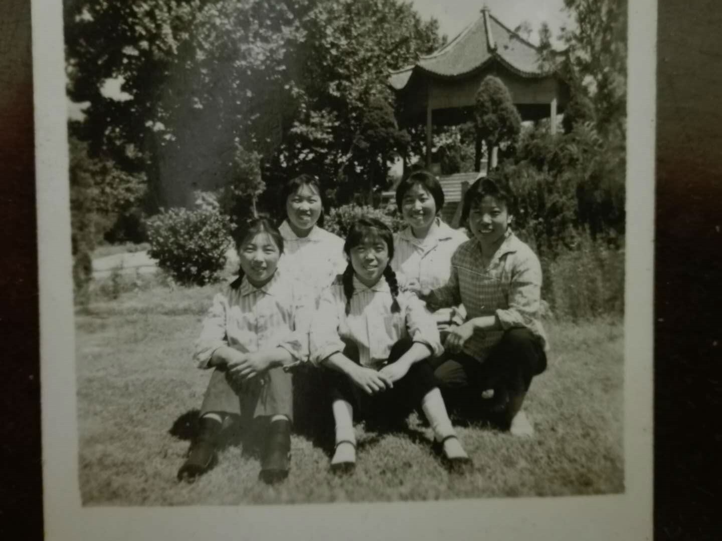 这是一张黑白照片,照片上5个女生依偎在一块,笑容甜蜜。我总是喜欢翻看相册里的老照片。这张照片是40多年前我和同学在郑州人民公园的合影。那时,我们都是二十出头的年纪,刚刚大学毕业。
