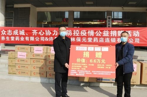 养生堂天然VC咀嚼片、医用口罩、免洗消毒凝胶、消毒酒精、医用洗手液、温度计……2月2日,由鄢陵县市场监管局牵线,许昌大参林保元堂药店连锁有限公司联合养生堂药业有限公司等多家药企,将价值10万元的防疫物资捐赠给鄢陵县教体局等单位,为该县的疫情防控工作注入力量。