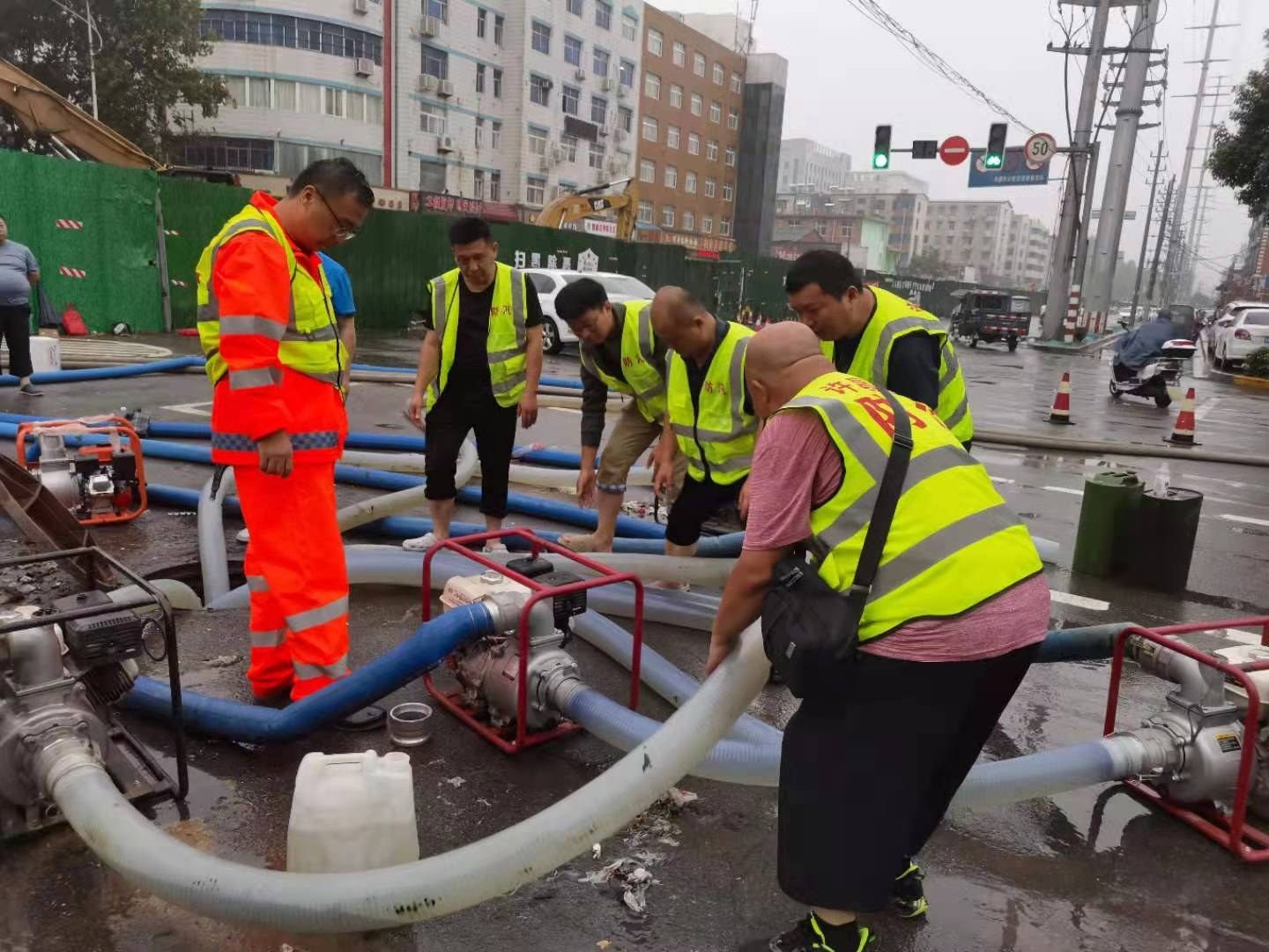 7月20日,雨一直下,在市区劳动路与八一路交会处的临时抽水点,许昌市市政实业集团有限公司防汛负责人陈珂告诉记者,为了应对本次强降雨,做好防汛工作,他们投入300余人的防汛队伍,分布在市区各防汛关键位置,调配挖掘机、高压冲洗车、疏挖车、吸污车、巡视车等各类防汛车辆设备100余台,排涝水泵40余台,缓解了多处路面积水。其中,市区7个铁路立交桥和1个隧道都安排工作人员24小时值守,确保行人和车辆安全通行。