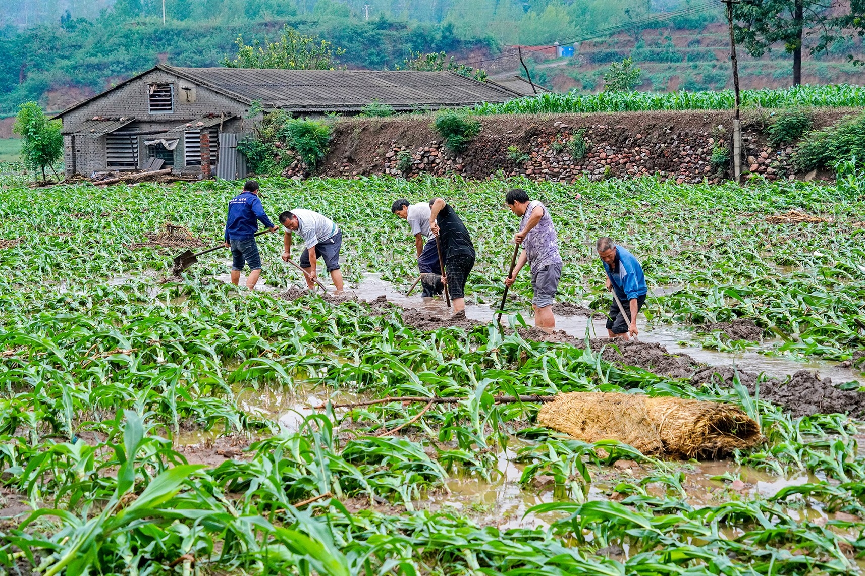 7月23日,禹州市苌庄镇玩花台村群众开展生产自救。 签约摄影师 耿亚伟 摄