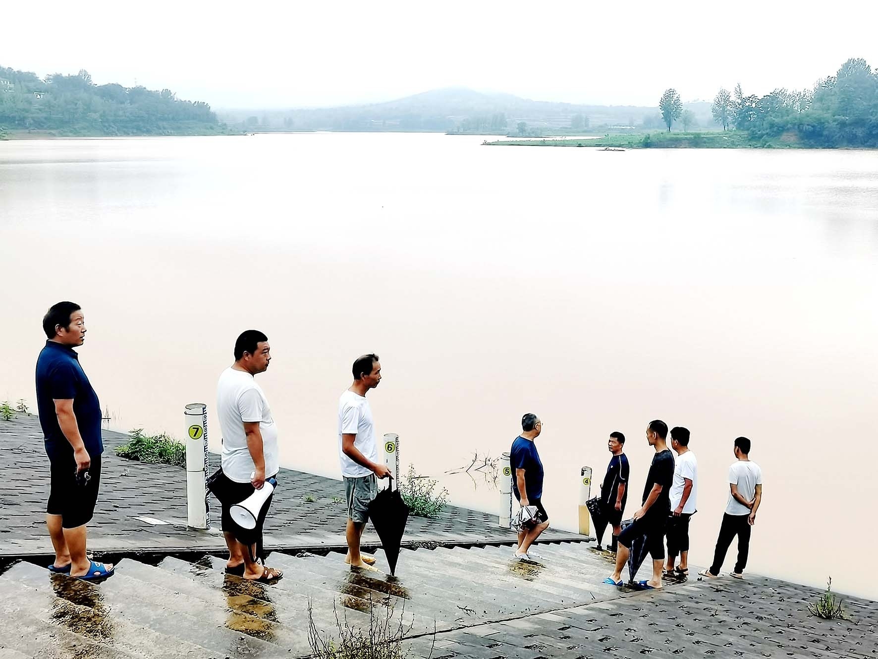 干枯了8年的禹州市纸坊水库因这场大雨再度蓄满了水,图为7月21日,库区管理人员在查看水情。 签约摄影师 王书卿 摄
