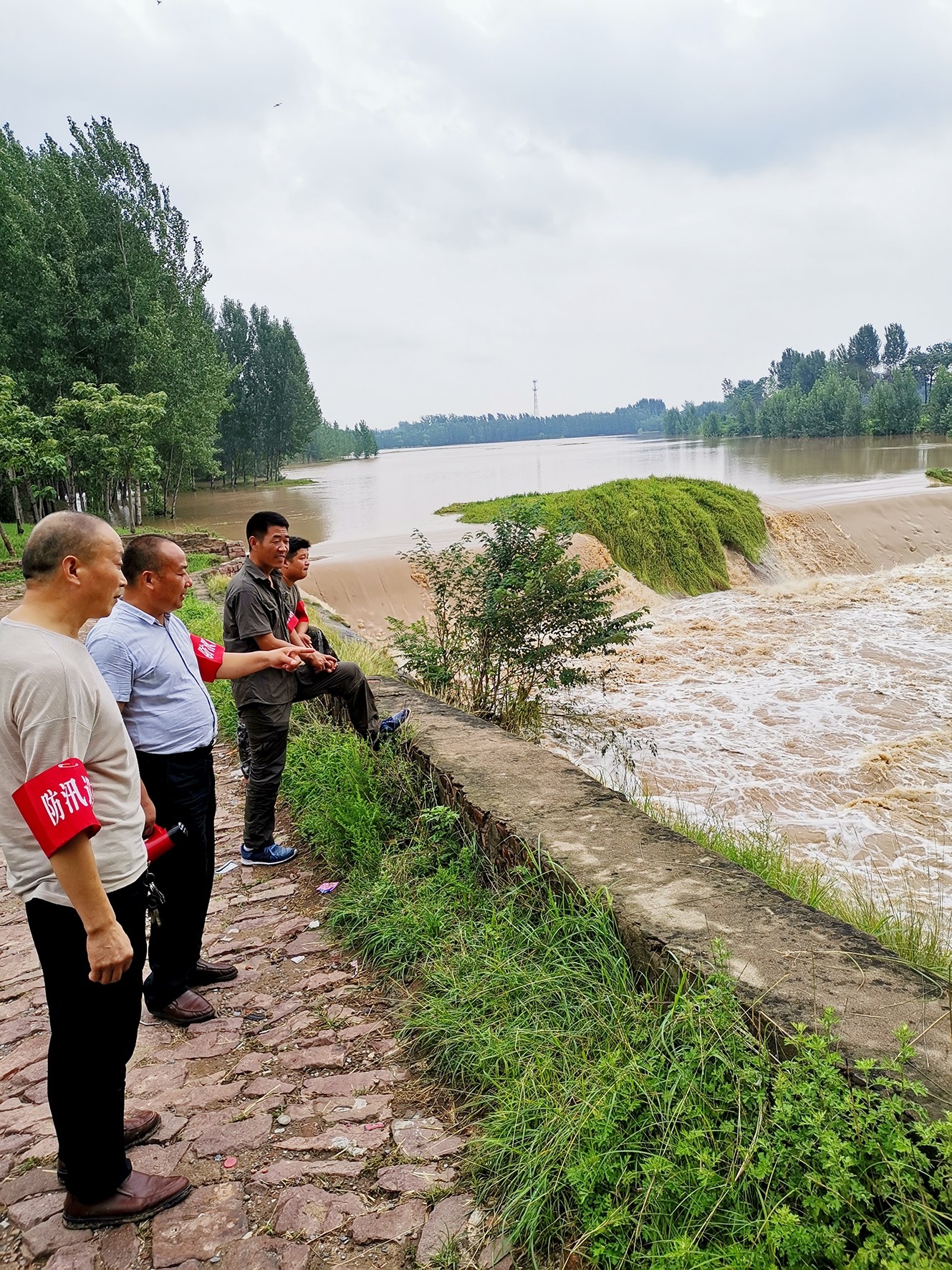 7月23日,襄城县颍阳镇大河村值班群众在监控河道。 签约摄影师 邓军 摄