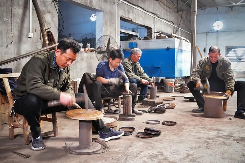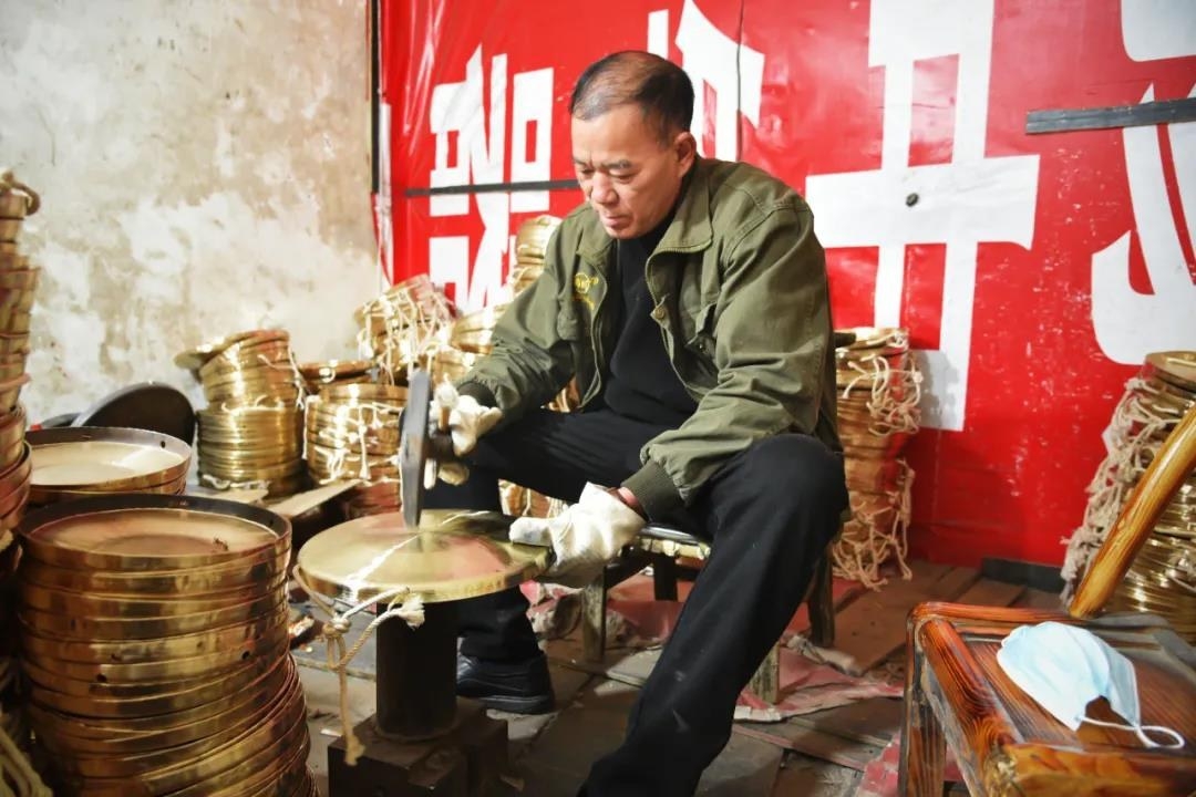 欧营铜器是中原锻铜、乐器制作历史的生动呈现,以各类锣、镲、铙为主,生产技艺在将近400年的传承中,以家族和师徒传承的方式,世代沿袭。响铜乐器制作是典型的民间手工技艺,其中很多工序很难被现代技术替代。由于劳动强度大,工艺学习周期长,所以制作响铜乐器的人并不多。