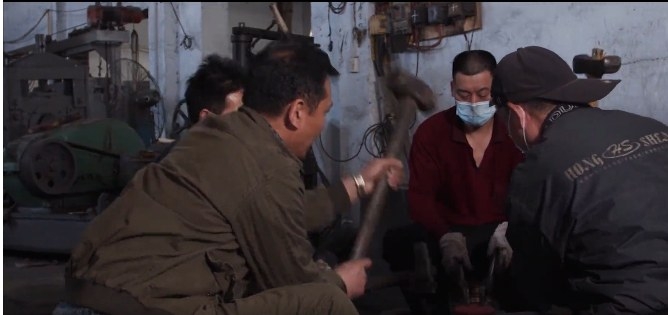 据《襄城县志(1988—2000年)》记载,欧营铜器制作始于明代末年,延续至今。制作一件音质完美的欧营铜器,需要技师拥有丰富的经验。熔铜时,铜和锡要严格按照一定的比例添加,这样制作出的欧营铜器才会兼具硬度和柔韧度。锻打是成型的基础,也是材质初具响铜资质的重要工序。特别是铙的定型,更是需要持续的锻打、锤窝、锤砍。