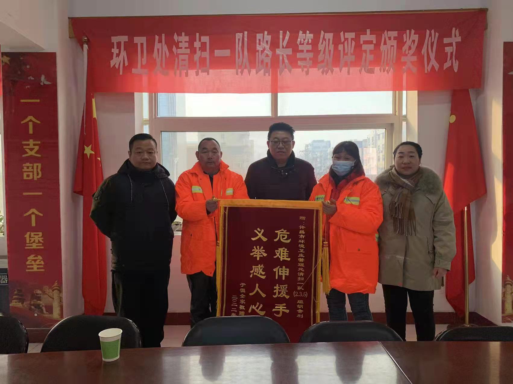 本报讯 (记者 张铮 通讯员 刘豪) “俺妈的命是你们救的,感谢你们!”2月10日9时许,市民于先生将一面写有“义举感人心,危难伸援手”字样的锦旗送到了许昌市环卫处清扫一队环卫工人手中,并将一件环卫服归还给他们,感激他们在危急时刻,伸出援手营救自己不慎落水的母亲。