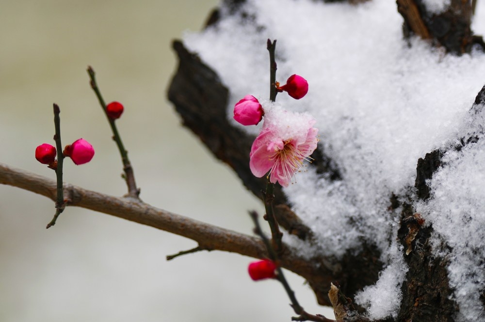 2月17日,受强冷空气影响,我市迎来一场春雪,市区贵妃苑附近,纷纷扬扬的白雪与亭台水系、梅花交相辉映,构成一幅美丽画卷。