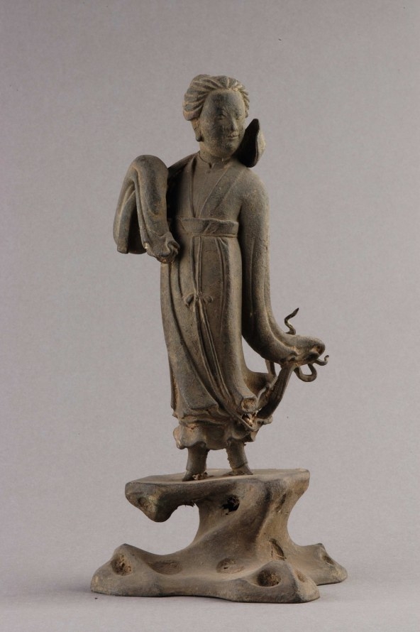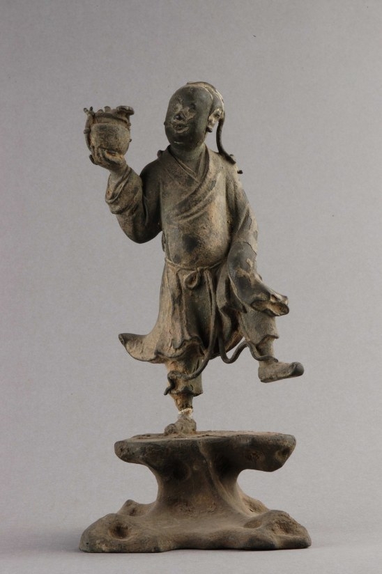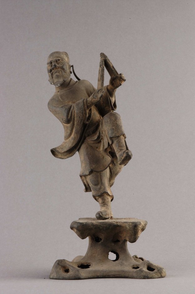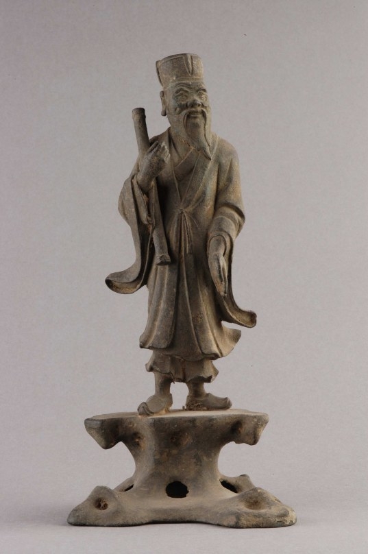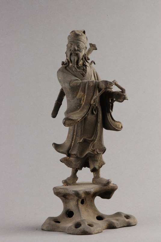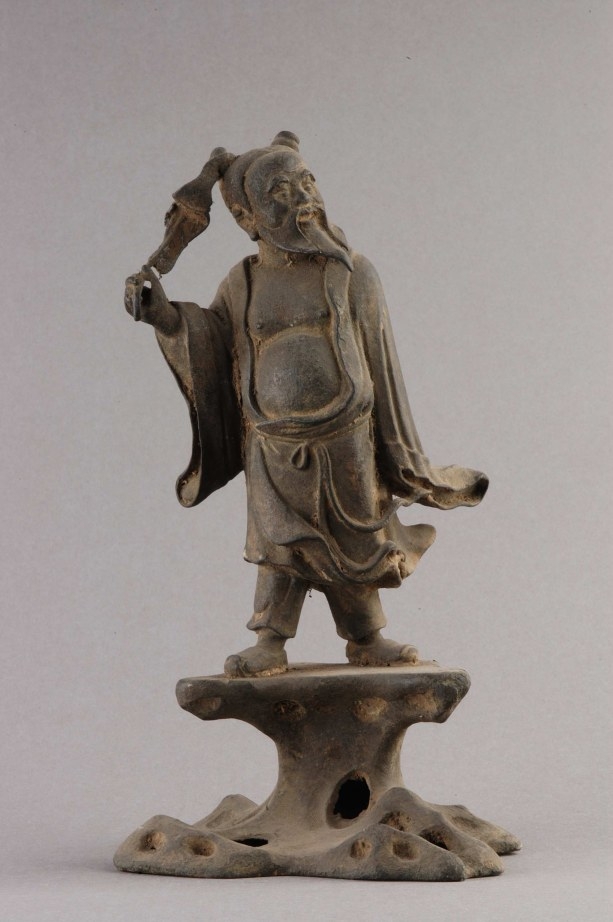 许昌博物馆展出的明代铜八仙虽为铜铸,但却呈铁黑色,高22厘米—23.7厘米。八位仙人身高相近,皆立于等高的太湖石状铜座上,衣带飘飘,手持各种法宝,呈现出神仙特有的韵致与洒脱。