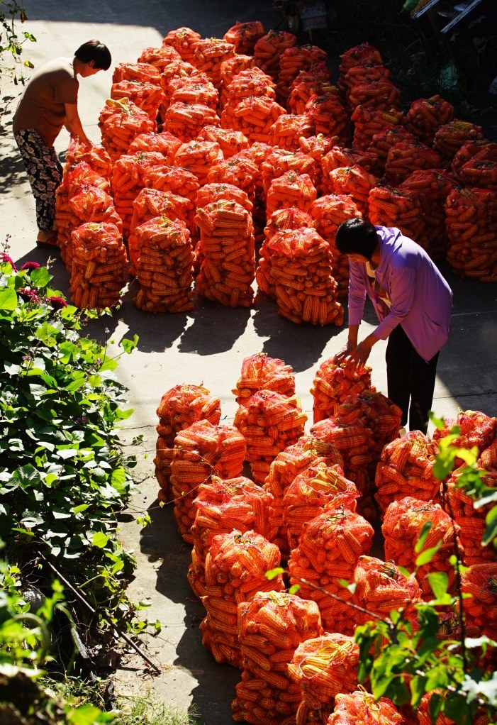 图4:10月16日,鄢陵县马坊镇前陈村村民在晾晒玉米。