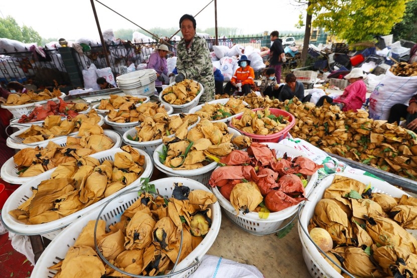 图2:10月15日,鄢陵县马坊镇程岗村村民在分拣“鄢玉浓香丑桃”。