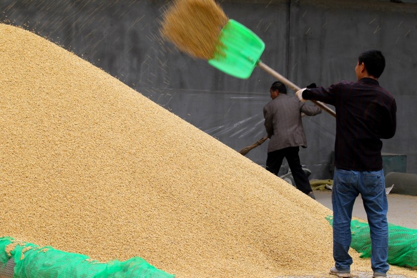 图3:10月16日,在位于建安区陈曹乡双庙村的建安区金丰公社农业服务有限公司,工作人员在收储大豆。