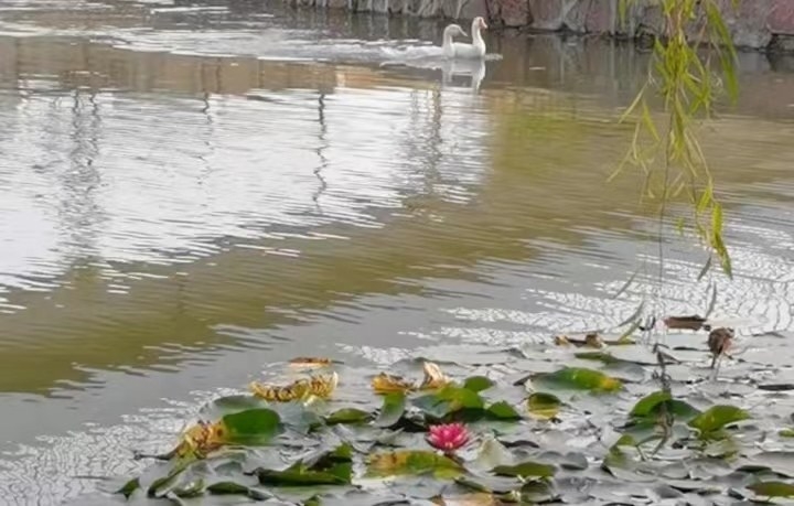 此外,护城河上的一朵朵荷花凋零后,留下的荷叶在水中摇曳生姿。若遇上秋雨绵绵,便可“留得枯荷听雨声”了。