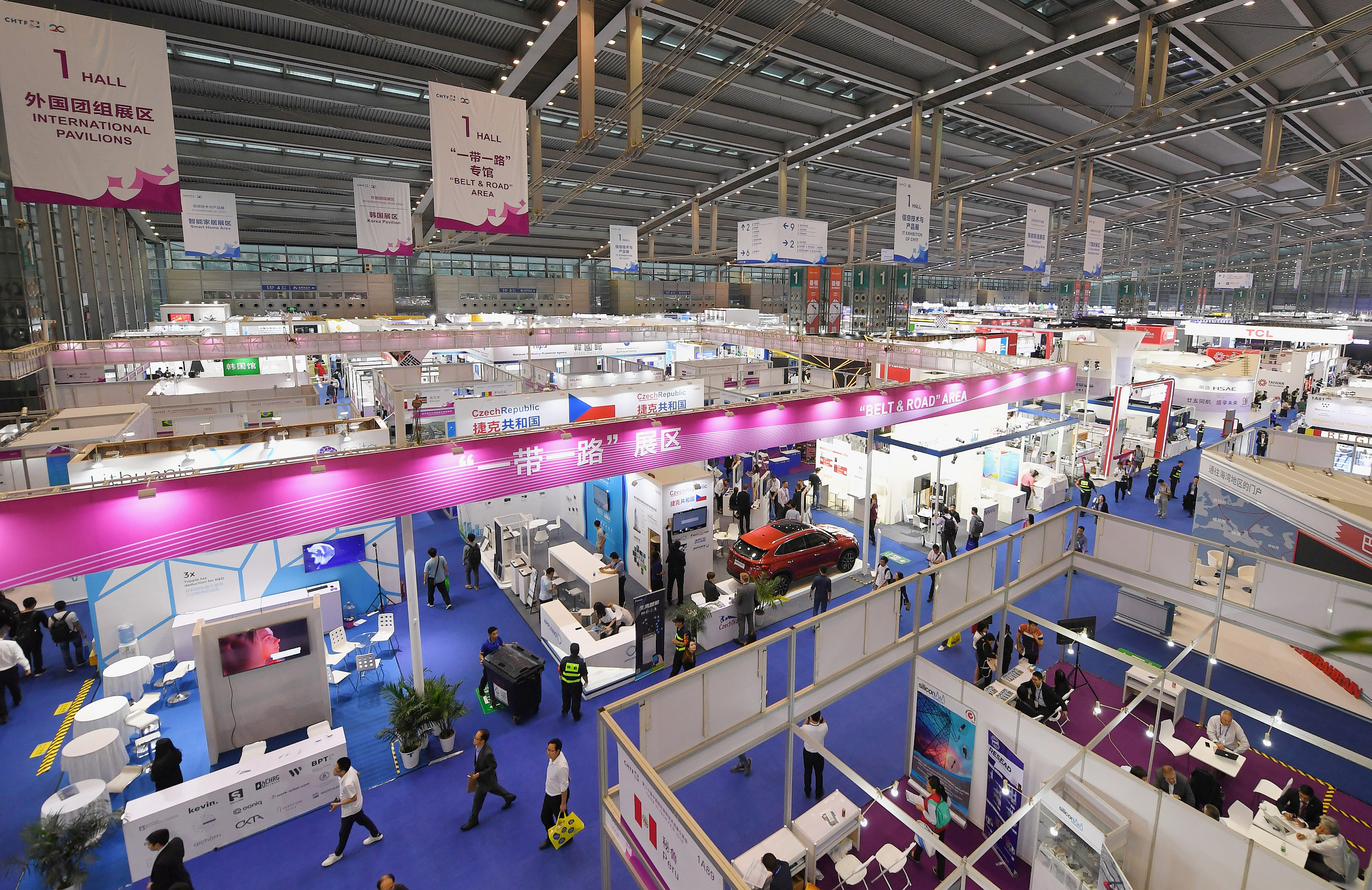 图为11月14日拍摄的第二十届高交会现场。当日,第二十届中国国际高新技术成果交易会在深圳开幕,40多个国家、地区、国际组织的60多个团组带来了1000多项新产品、新技术。 新华社记者 毛思倩 摄