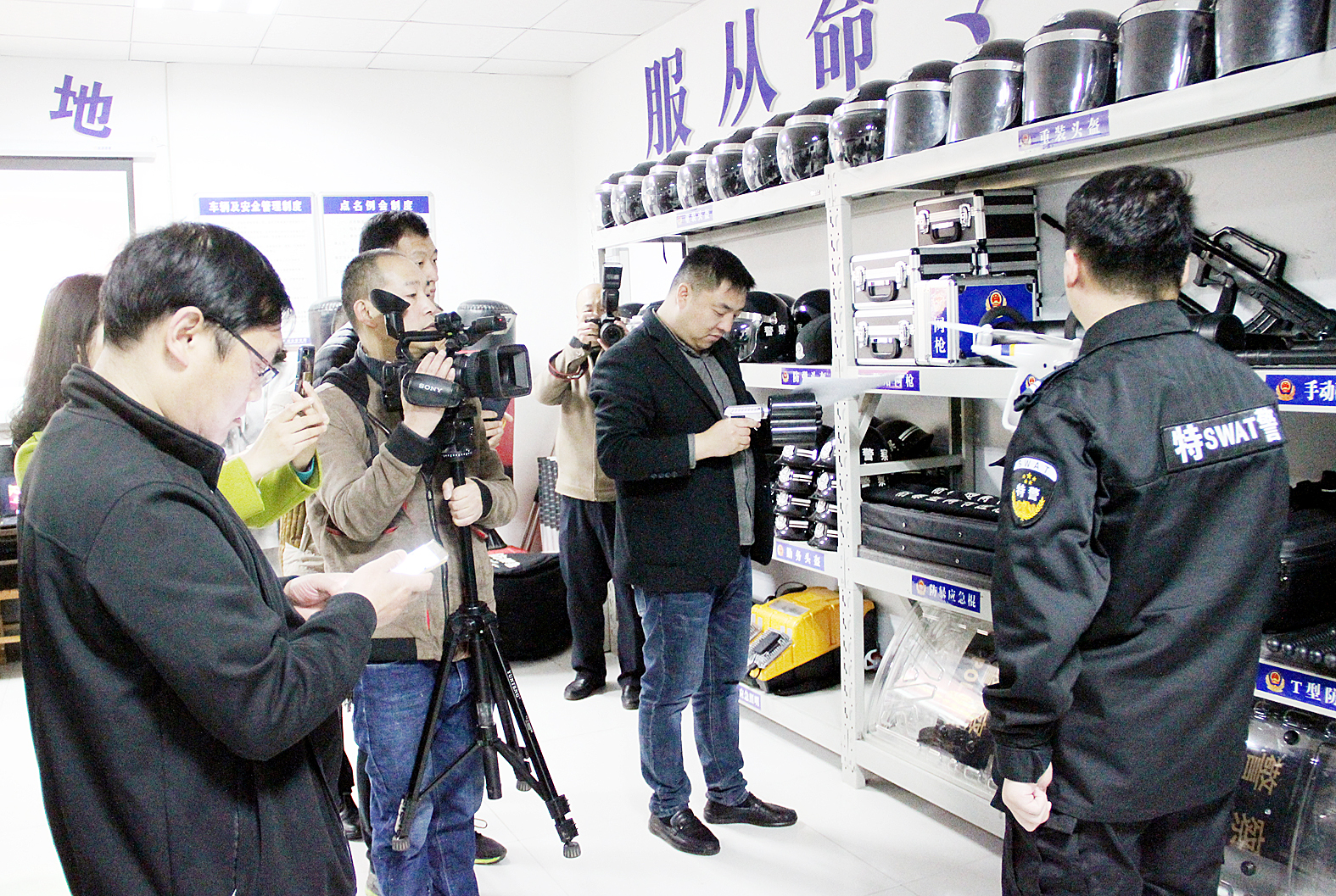 当天上午媒体记者、网络大V等在许昌市公安局东城分局现场了解警用装备的功能、特点等。 董全磊 摄