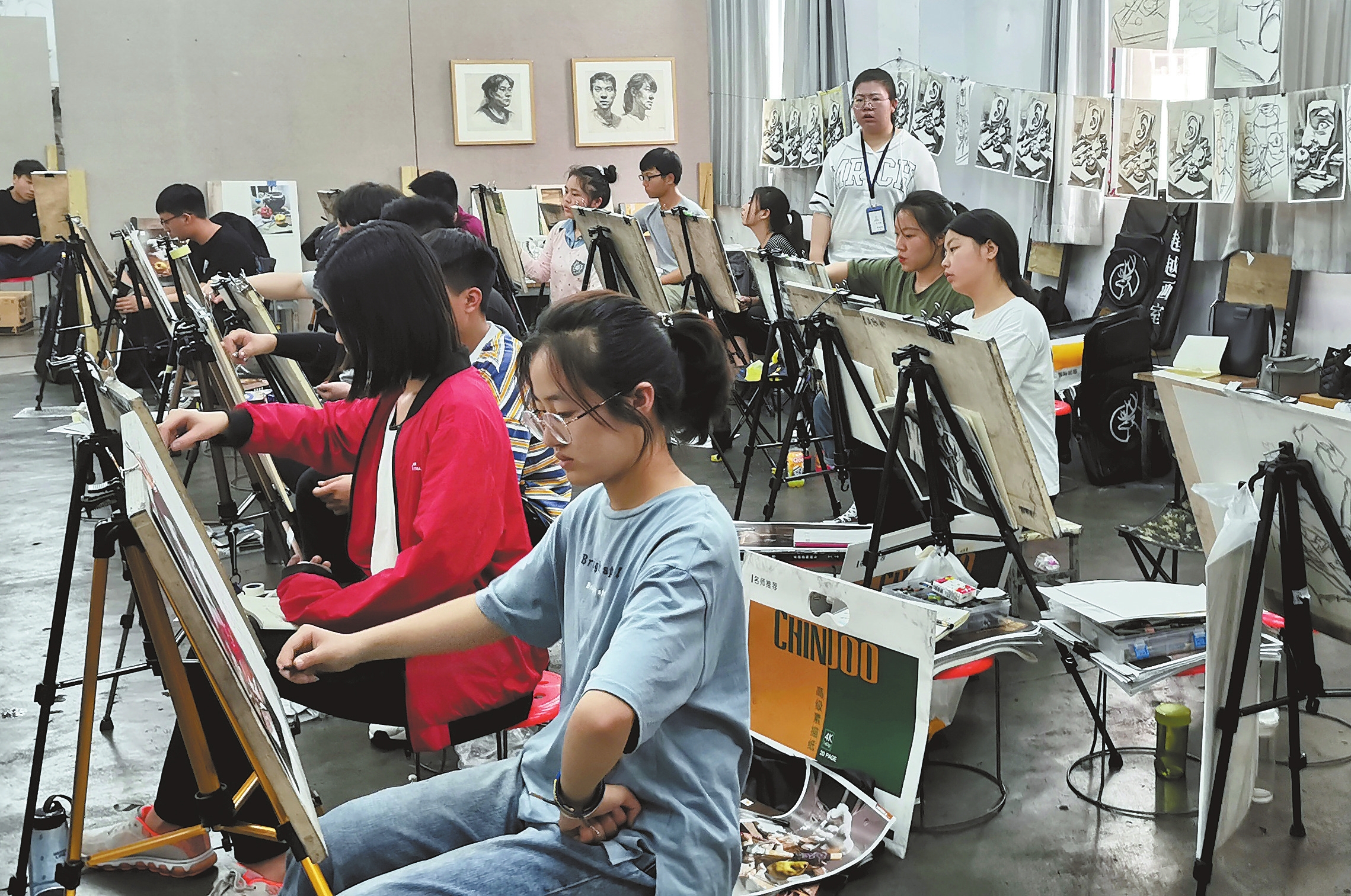 “沙沙沙”的声音在画室不间断,石膏像在美术艺考生的画纸上栩栩如生。5月19日,记者来到市区一家美术培训教育机构,几十名高中美术艺考生正手持画笔在画室奋战,加紧专业课的冲刺学习,考上美术专业的高等学府是众多美术生的梦想。 本报记者 乔利峰 摄