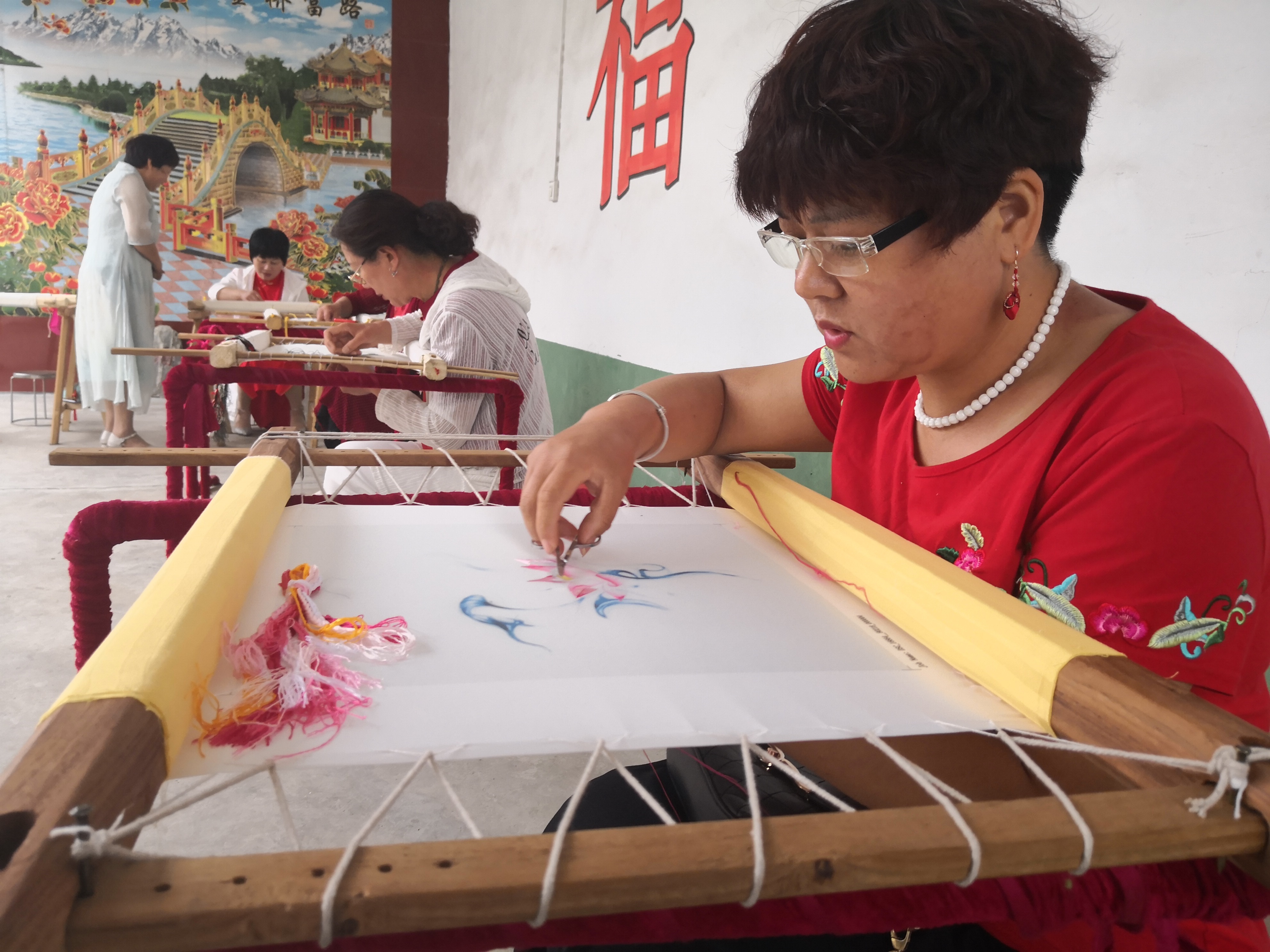 日前,在禹州市褚河镇吴湾社区“巧媳妇”加工点,妇女们正在一起刺绣。近年来,我市通过培育“巧媳妇”创业就业工程示范基地、开展技能培训等,把劳动密集型的手工产业项目延伸到乡村。目前,全市已经培育省级“巧媳妇”工程示范基地7个、市级“巧媳妇”工程示范基地70个、县级“巧媳妇”工程示范基地157个,“巧媳妇”加工点超过600处,累计培训妇女4.26万人次。 胡晨 摄