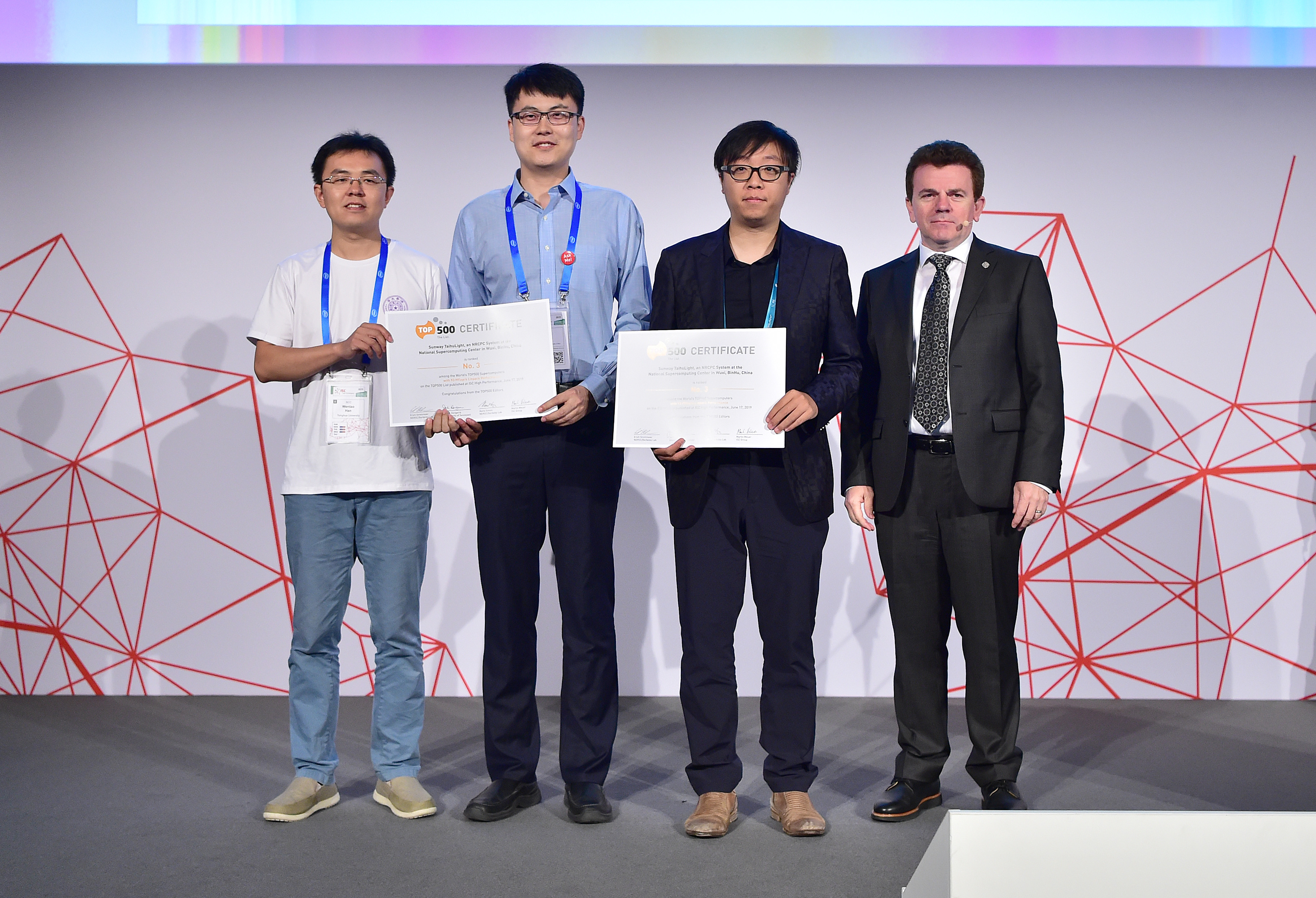 6月17日,在德国法兰克福,中国超算“神威·太湖之光”团队代表上台领取证书。