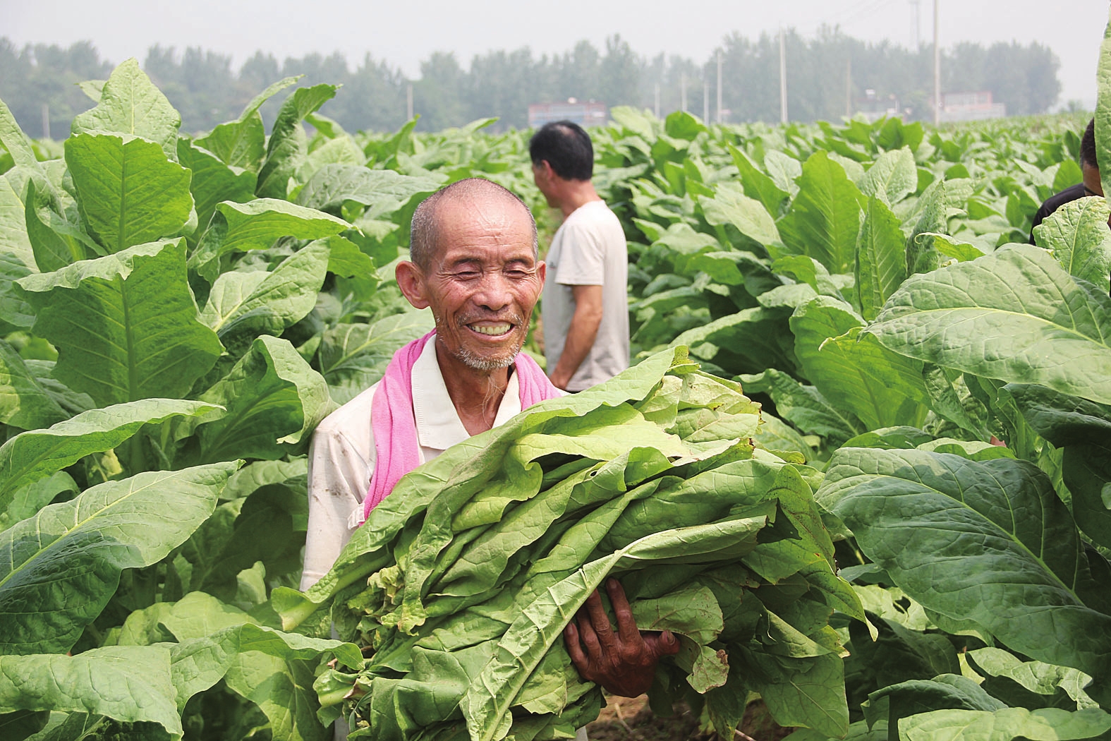 7月23日,“烟叶王国”襄城县范湖乡西谭村烟农正在采收成熟的烟叶。2019年,襄城县种烟10万余亩,由于进行了土地流转,并鼓励支持种烟大户,实行连片种植、科学管理,该县到处呈现出烟的海、烟的林,溢香流金,四野飘香,成为一道亮丽的风景线。 古国凡 梁慧晓摄