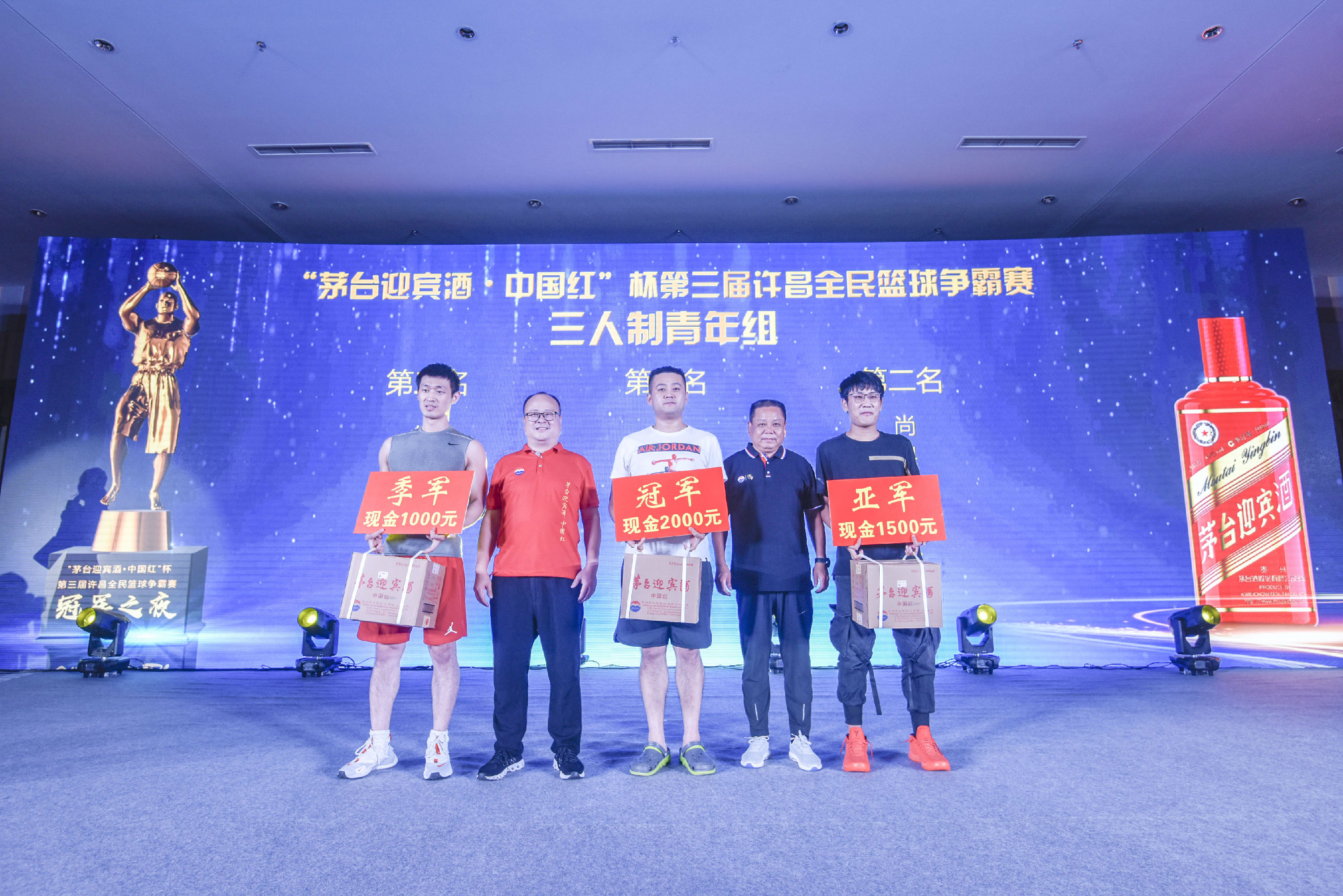 在首先进行的颁奖仪式上,三人制青年组冠军茅台汉酱队、亚军尚典卫浴队、季军小豪队,三人制成人组冠军茅台金王子队、亚军南利装饰队、季军坤鹏乐虎队,五人制冠军许昌德通队、亚军南利装饰队、季军植着生态景观队等9支队伍的代表分别上台领奖。
