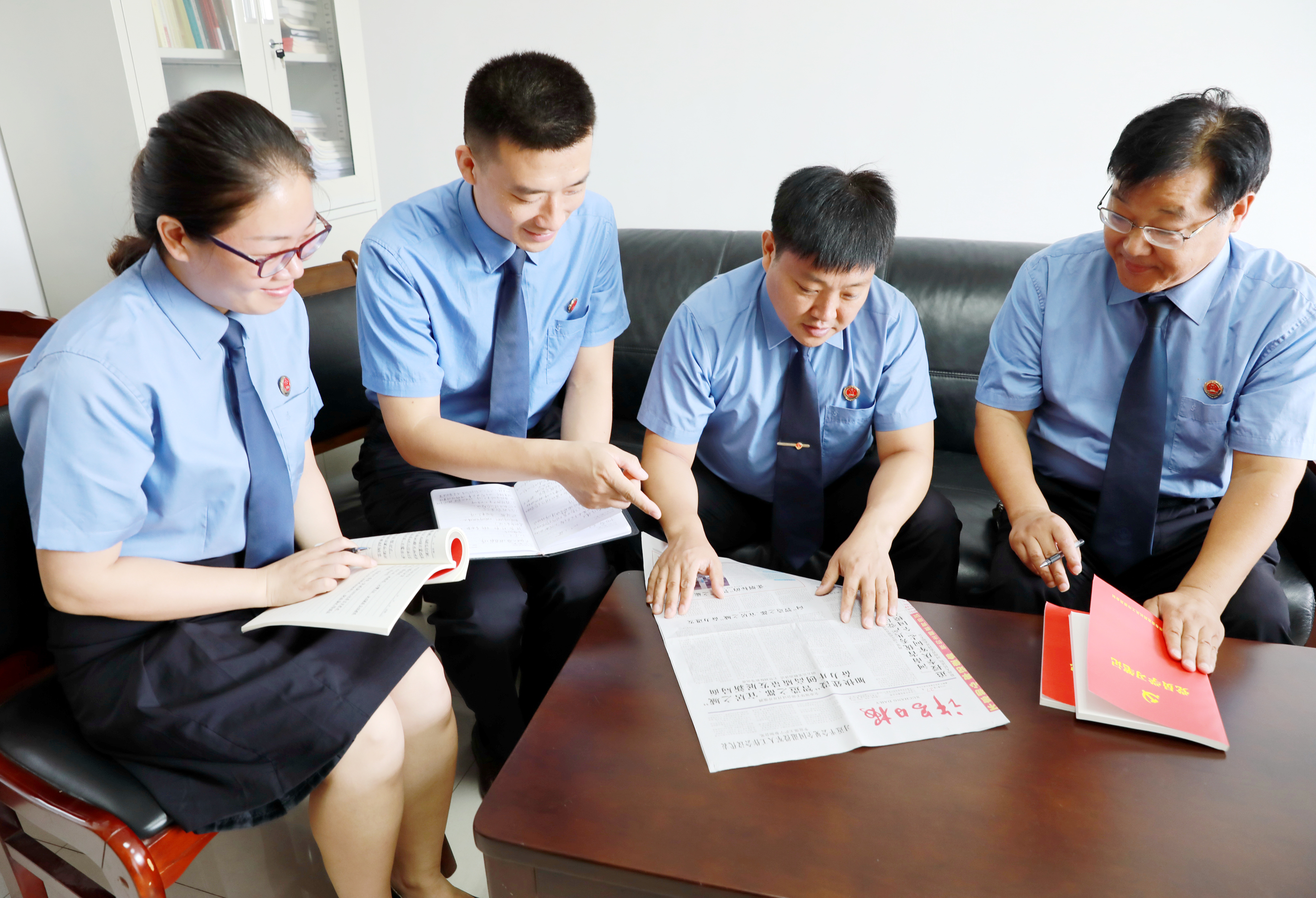 8月13日上午,许昌市人民检察院检察干警在学习《许昌日报》上刊发的相关报道。他们纷纷表示,忠实履行法律监督职责,再接再厉、加压奋进,为建设“智造之都、宜居之城”贡献更多检察力量。 王凯 摄