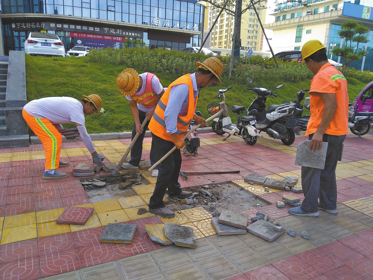 8月30日,市政人员正在东城区魏文路上修缮人行道步砖。近来,东城区狠抓目标落实、强化动态管控,针对存在的问题和短板,立行立改,确保各项创文任务落到实处。 孔刚领 摄