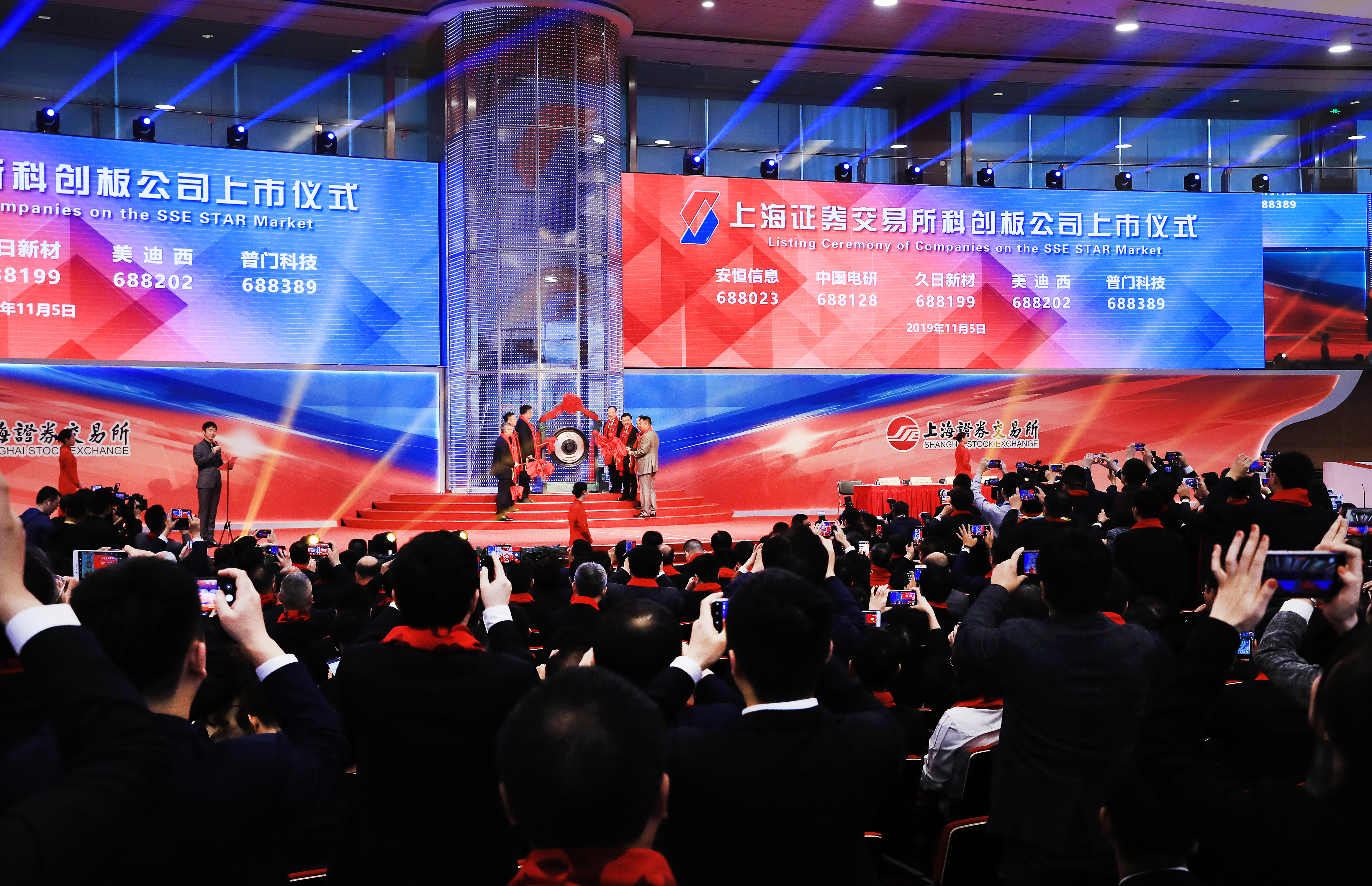 日前,科创板5只新股集中上市。图为当日上海证券交易所科创板公司上市仪式现场。新华社记者 方喆 摄