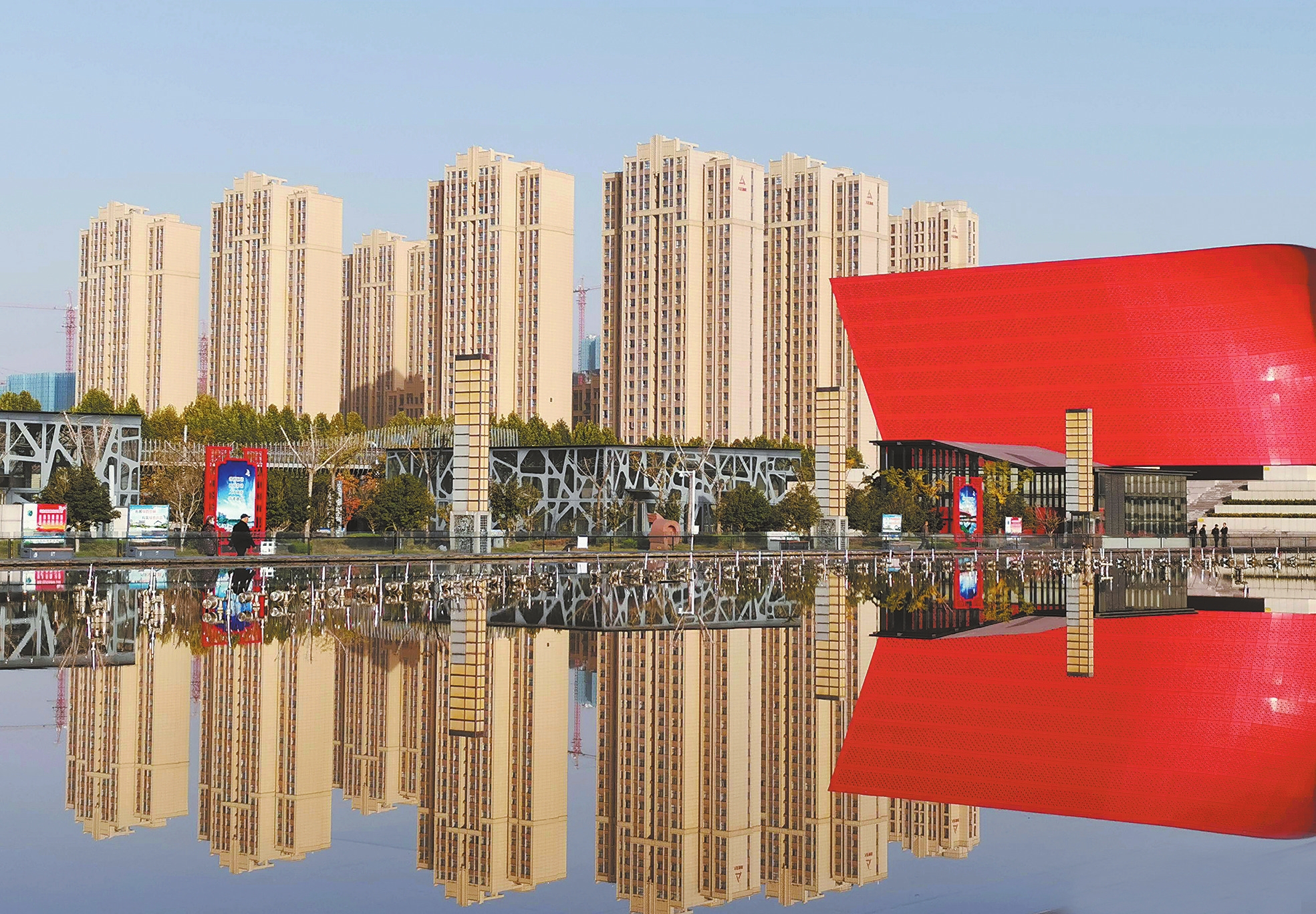 11月18日,记者在市科技广场拍摄的建筑物与水中倒影相映成趣,虚实相生,别有一番韵味。 本报记者 乔利峰 摄
